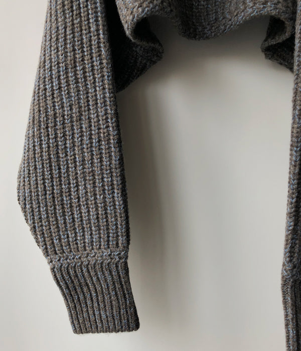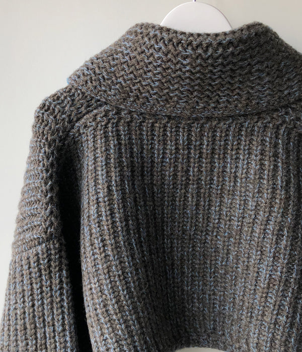 FUMIKA_UCHIDA/3G Mix Shetland/SHAWL-COLLAR SLEEVE SWEATER(CHLKHAKI/GUM)