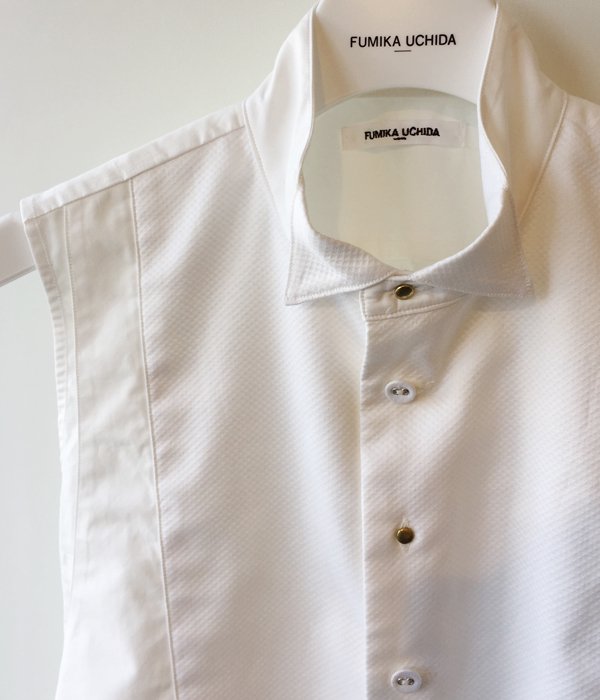 TOP > FUMIKA_UCHIDA > FUMIKA_UCHIDA/ART PIQUE WING-COLLAR NO-SLEEVE WAISTCOATS BIB SHIRT(WHITE)