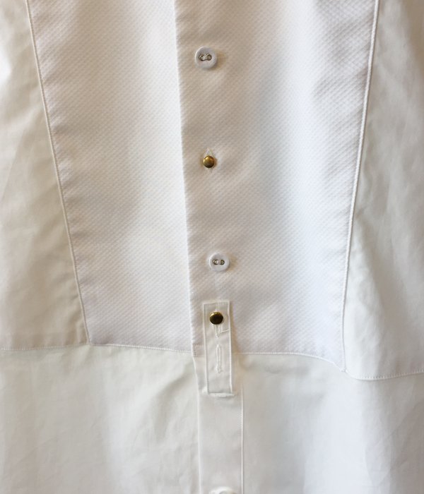 FUMIKA_UCHIDAからART PIQUE WING-COLLAR NO-SLEEVE WAISTCOATS BIB SHIRTが入荷しました。縦糸にシルクを織り込み、柔らかさと光沢感を持ったアートピケを使い、ウィングカラ―のフォーマルシャツとベストのディテールを一体化させたノースリーブシャツです。フロント開きにはオリジナルのスタッドボタンと共布のクルミボタンを交互に配したデザイン。
