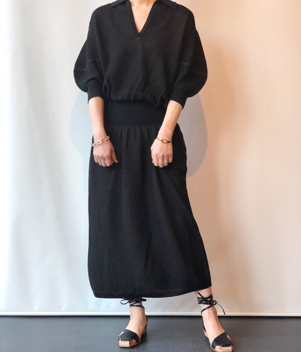 FUMIKA_UCHIDAからBALLOON-SLEEVE POLO NT DRESS(BLK/BRN)が入荷しました。袖は立体感のあるバルーンスリーブ、身頃はパーツごとに編み立と縫製を使い分けたIラインシルエットのポロワンピース。最上質なリネンと繊細なナイロンを使用し、光沢感と適度な清涼感を持つ生地で作られています。ローウエストのバランスで落ち感を楽しんで着たい一枚。共布のベルトが付属します。