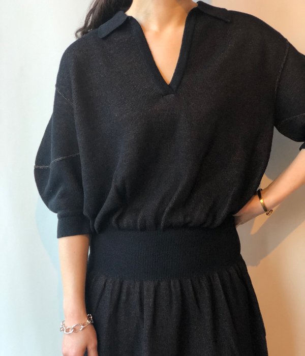 FUMIKA_UCHIDA/BALLOON-SLEEVE POLO NT DRESS(BLK/BRN)