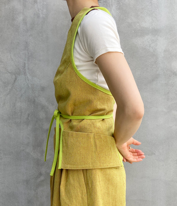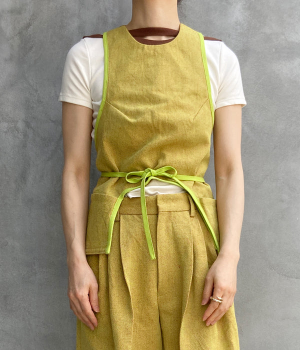 FUMIKA_UCHIDA/CHAMBRAY APRPN TOP(YELLOWGREEN/RED)