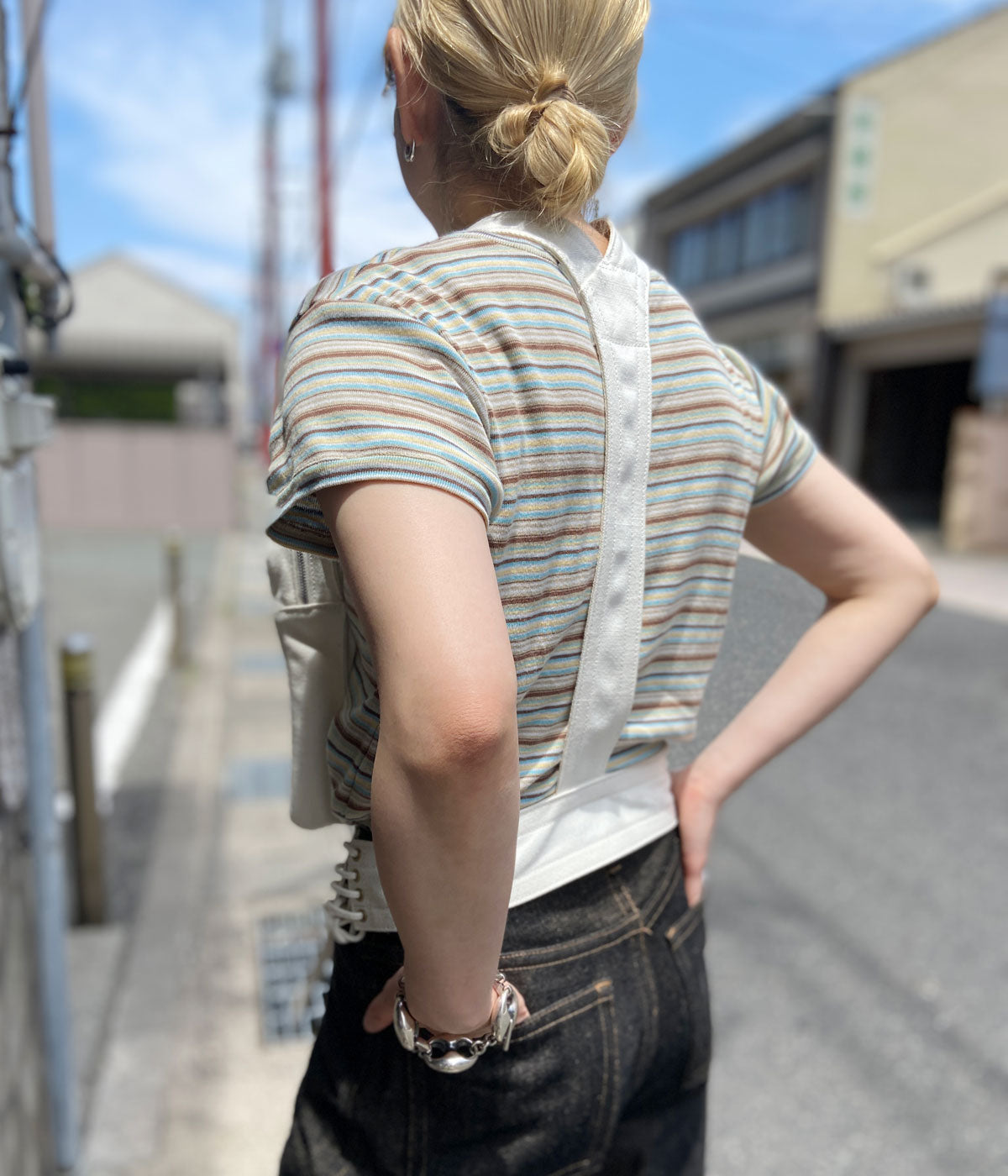 FUMIKA_UCHIDAからFUMIKA_UCHIDA×CHACOLI COTTON CANVAS TACTICAL VESTが入荷しました。ヴィンテージのタクティカルベストを機能的なディテールで再構築し、日常使いできるプロダクトとして仕上げました。前面のポケットは、美しいフォルムと実用性を両立させ、収納時のシルエットも考慮して立体的に設計。ベストとしても、ベスト型のバッグとしても機能するデザインに仕上げています。裏面は肌当たりに配慮し、丁寧な仕立てで快適な使用感を追求しました。ヴィンテージ海軍のユニフォームのように目の詰まったキャンバスの生地はFUMIKA_UCHIDAオリジナルの素材。膨らみ、毛羽感を抑える加工を生地に施し、デッドストックのような雰囲気を追求しています。硬さを増すために酢酸ビニルコーティングを施しておりますが、使用する毎に落ちていく経年変化が楽しめます。