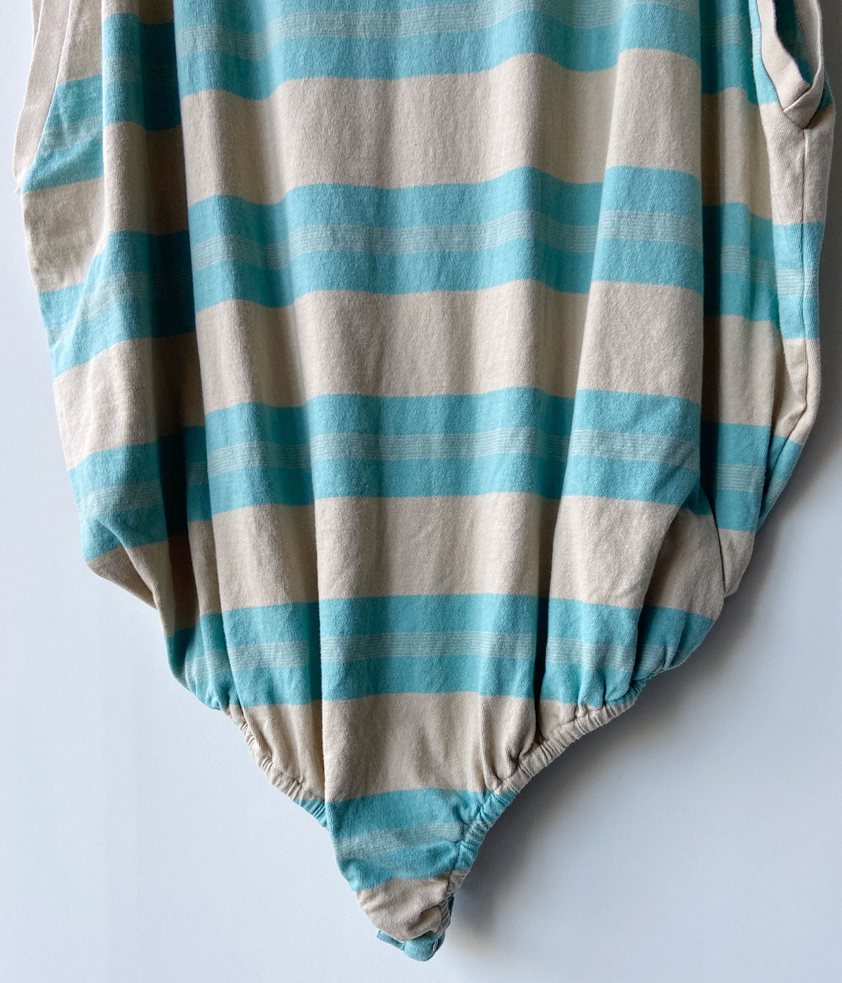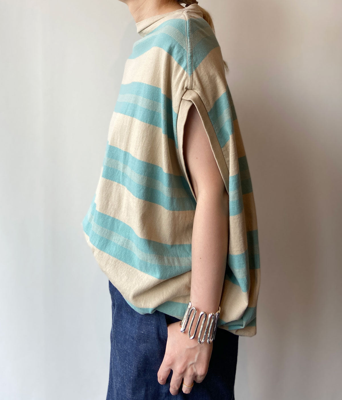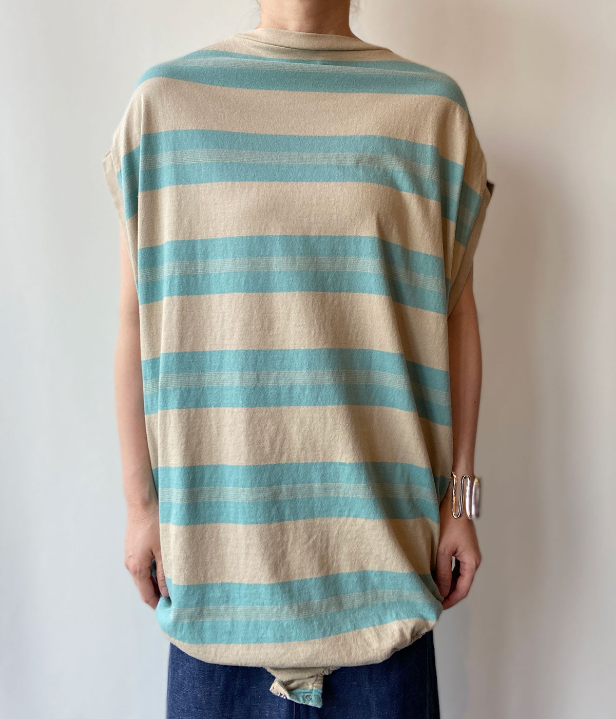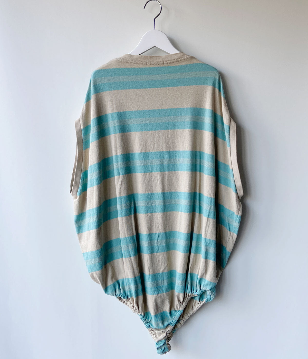 FUMIKA_UCHIDAからCOTTON JERSEY BALLON BODYSUITが入荷しました。ヴィンテージライクな粗野さのあるコットン糸を使用したオリジナルのボーダー柄生地で作るリラックス感のあるバルーンシルエットノースリーブボディスーツ。