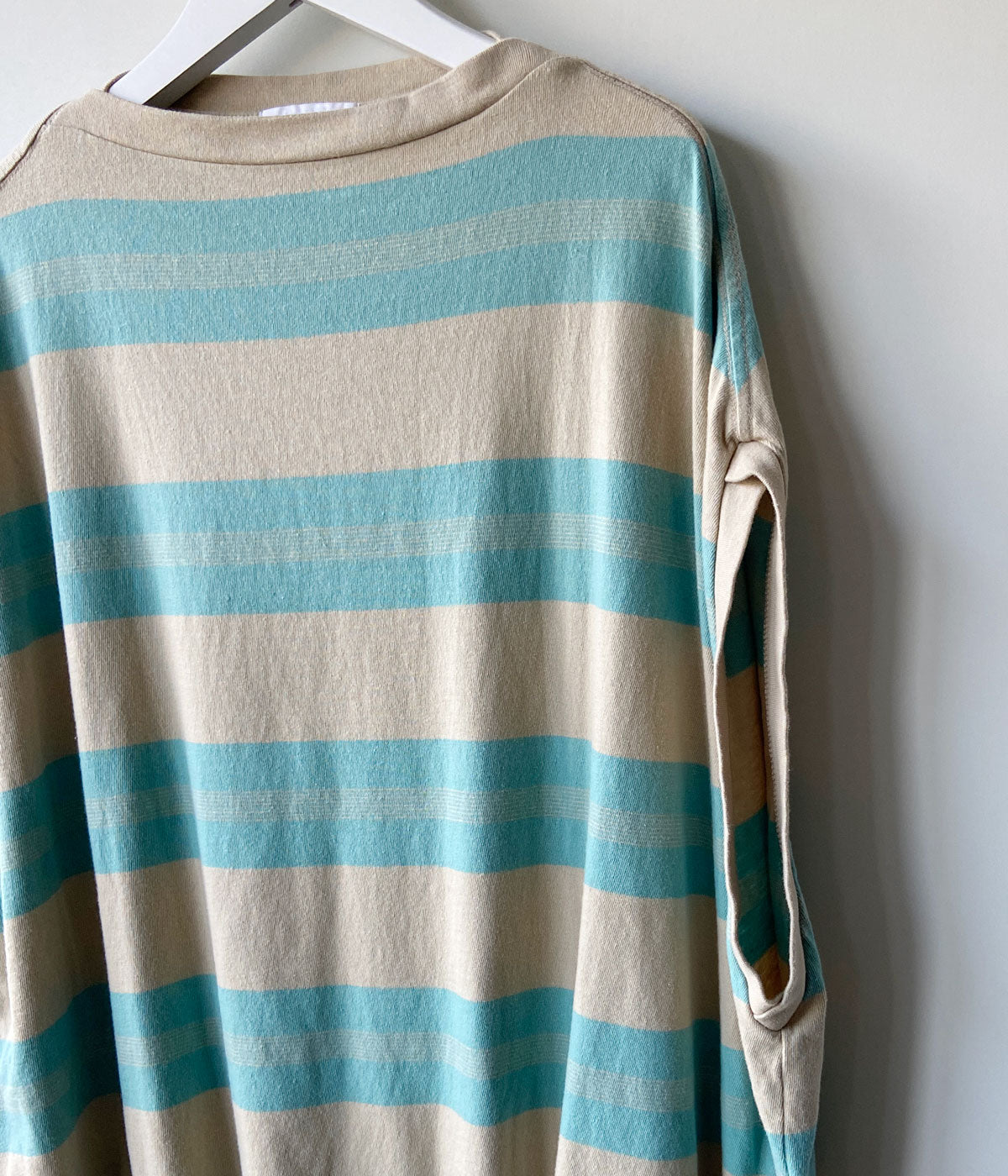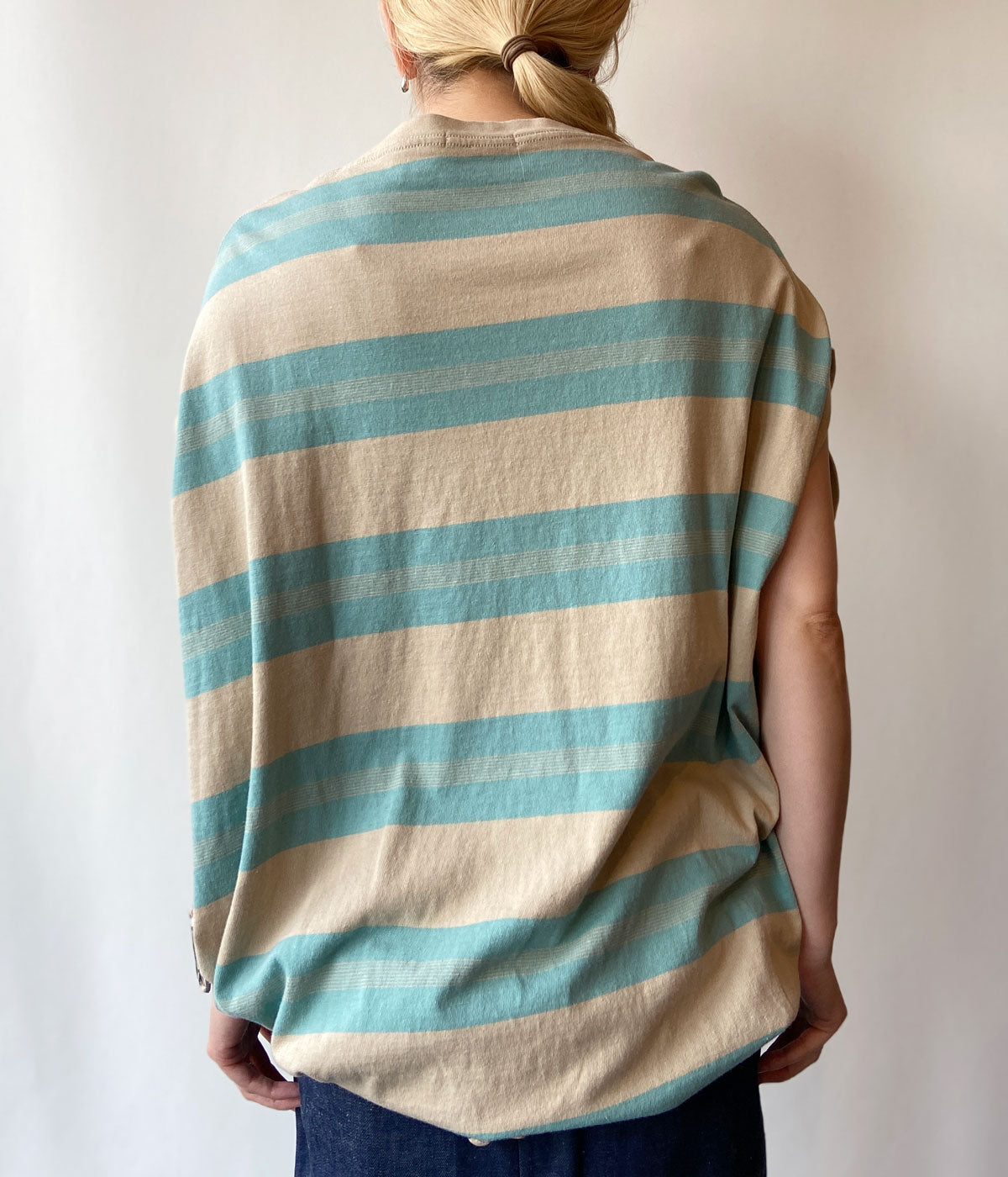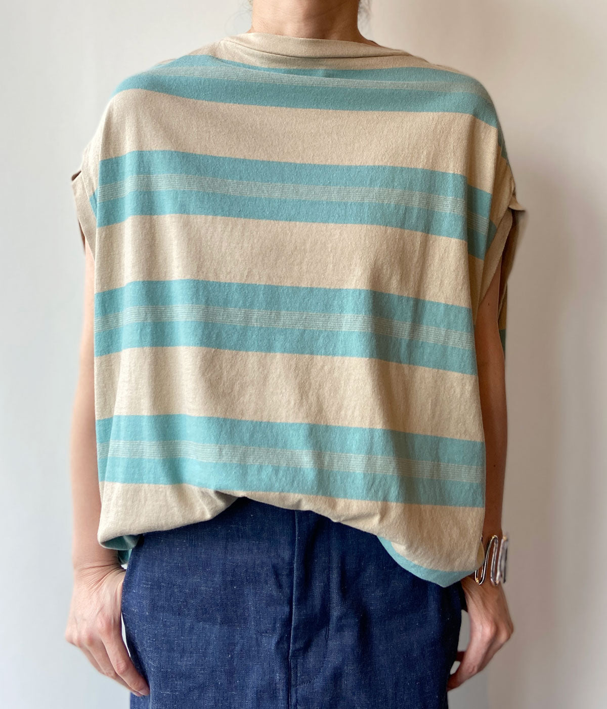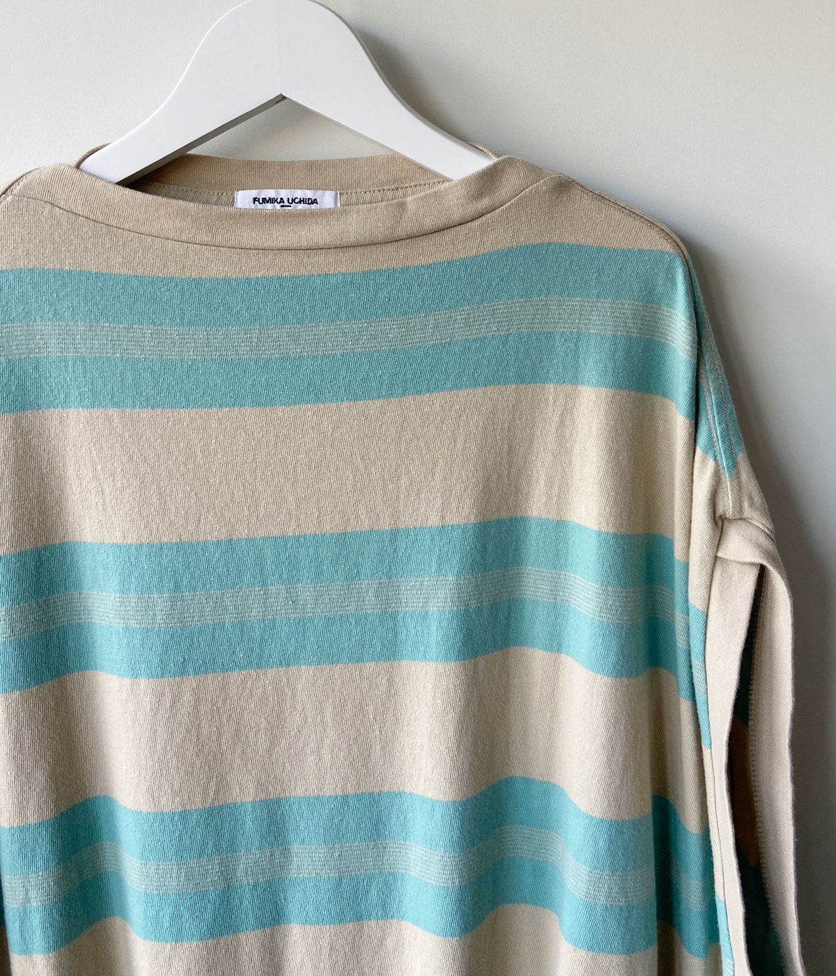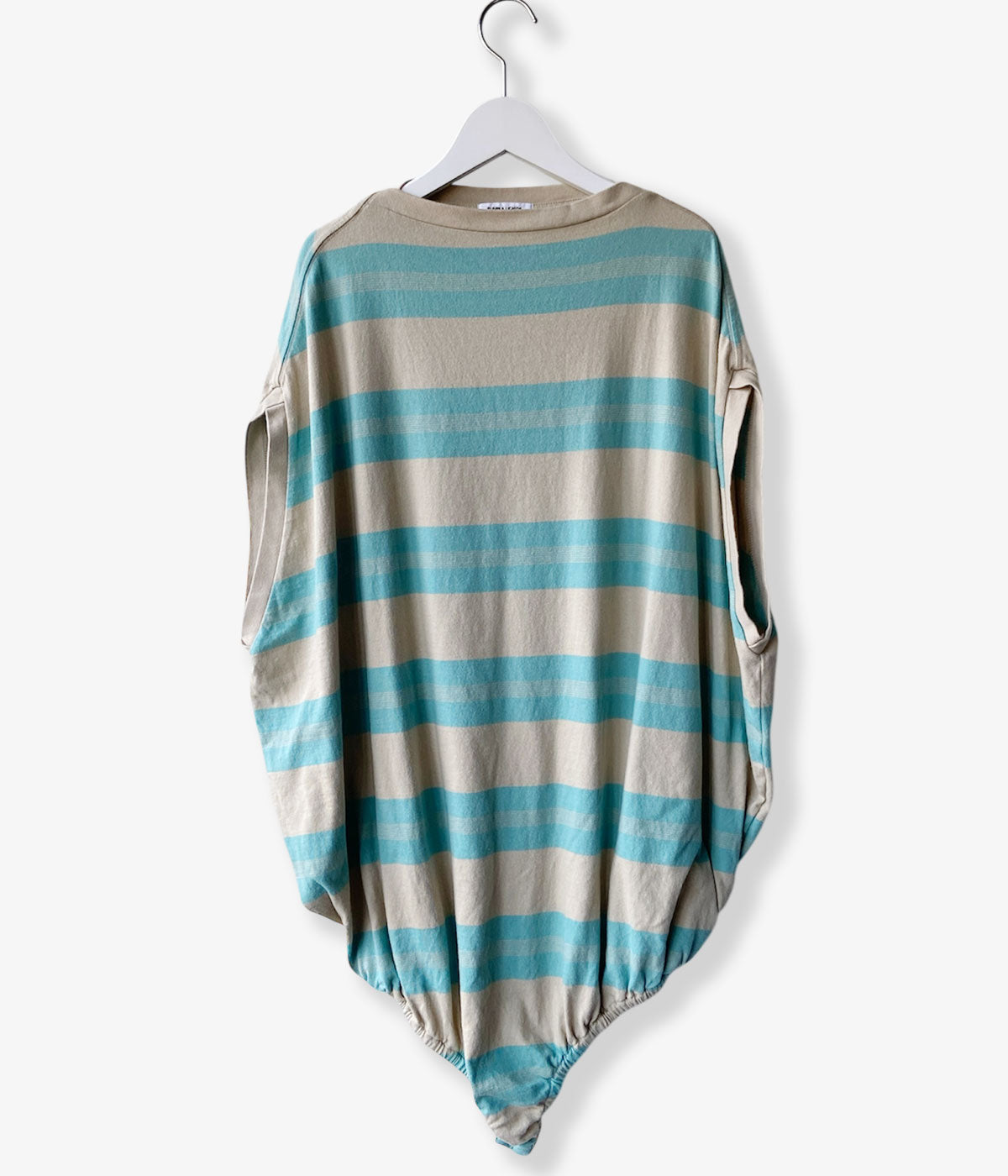 FUMIKA_UCHIDAからCOTTON JERSEY BALLON BODYSUITが入荷しました。ヴィンテージライクな粗野さのあるコットン糸を使用したオリジナルのボーダー柄生地で作るリラックス感のあるバルーンシルエットノースリーブボディスーツ。