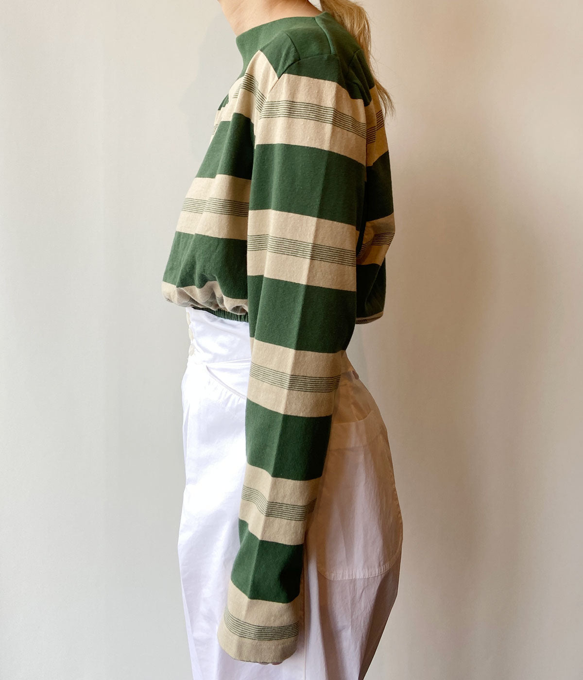 FUMIKA_UCHIDA/COTTON JERSEY CROPPED TOP(BEIGE/GREEN)