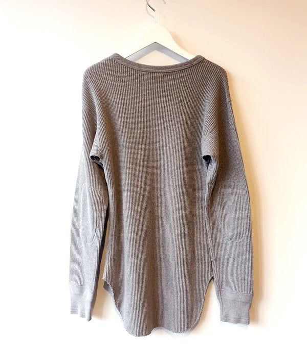 FUMIKA_UCHIDAからCOTTON WAFFLE_THERMALTOP(GREY)が入荷しました。厚手のサーマル地は目の大きなワッフルに編まれ、ドライタッチでありながら柔らかさがある生地。脇開き、エルボーパッチのディテールが特徴的。オーバーダイすることで絶妙な色合い、風合いに仕上がっています。