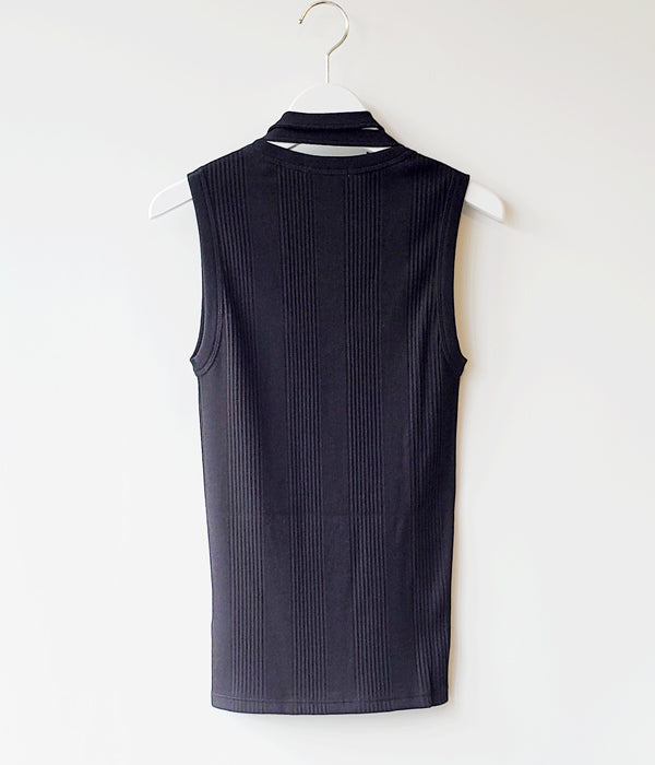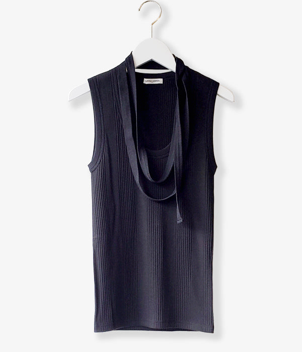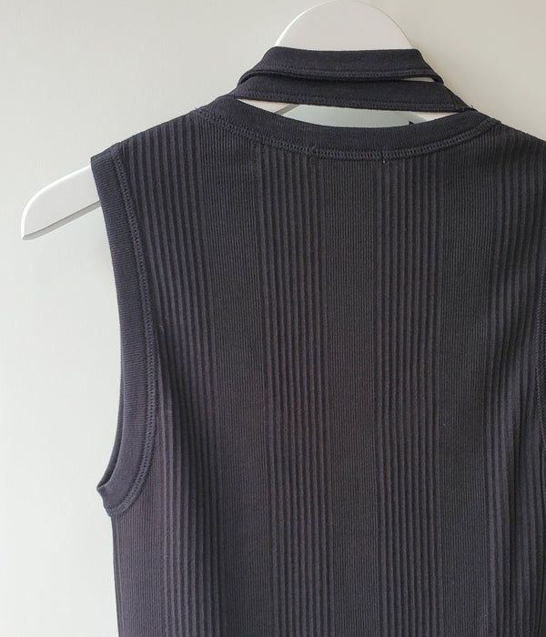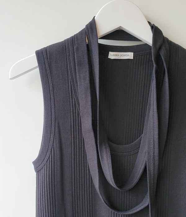 FUMIKA_UCHIDA/DOUBLE RIB U-NECK NEEDLE DRAWING NO-SLEEVE(CHARCOAL)
