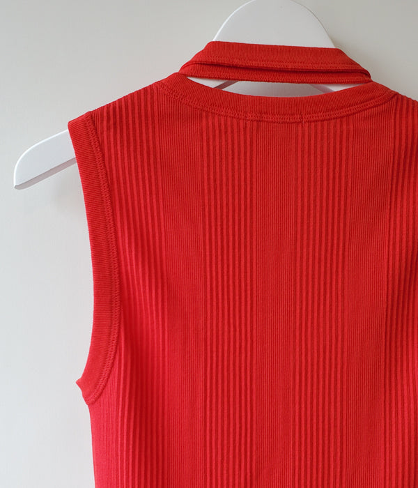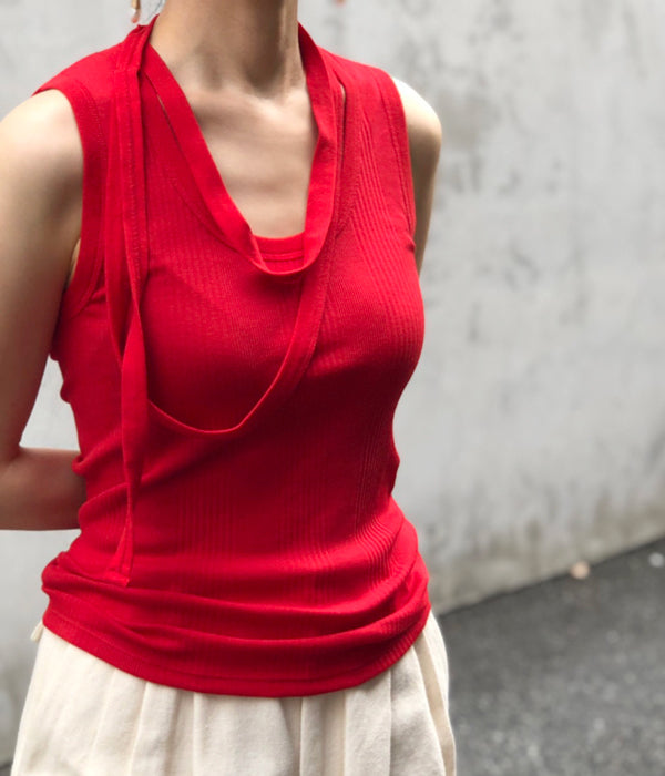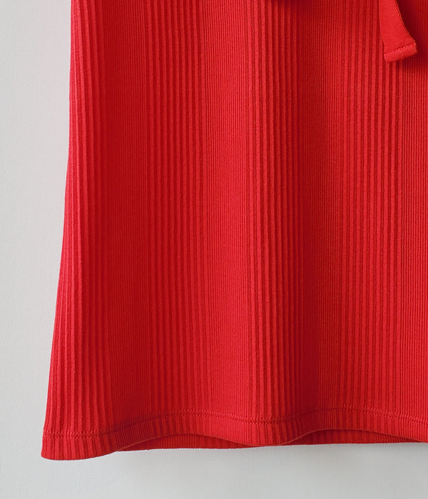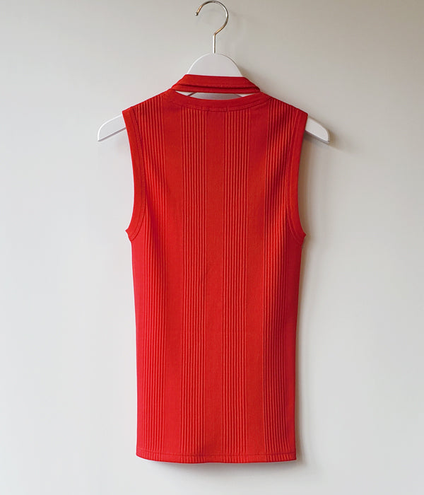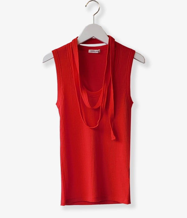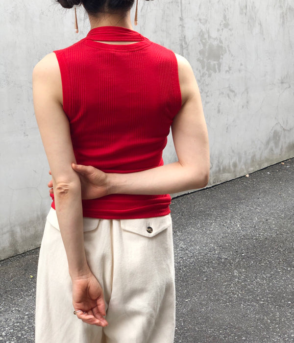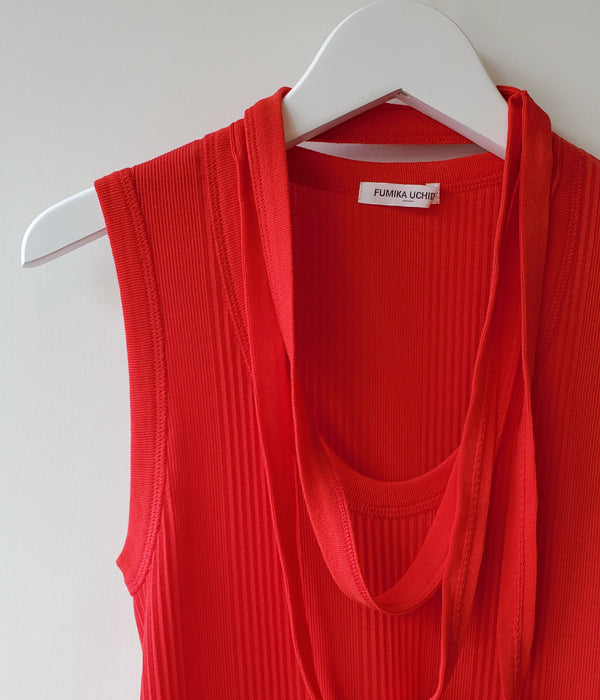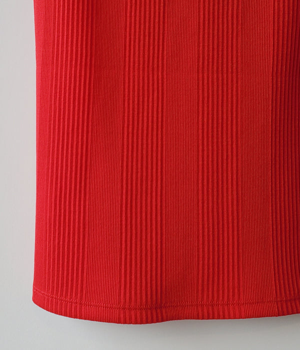 FUMIKA_UCHIDA/DOUBLE RIB U-NECK NEEDLE DRAWING NO-SLEEVE(RED)