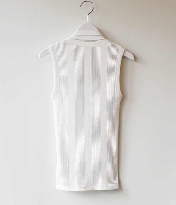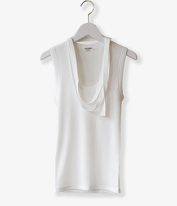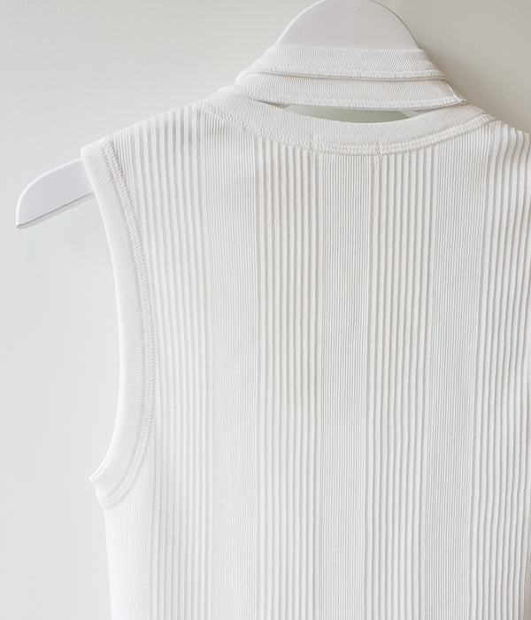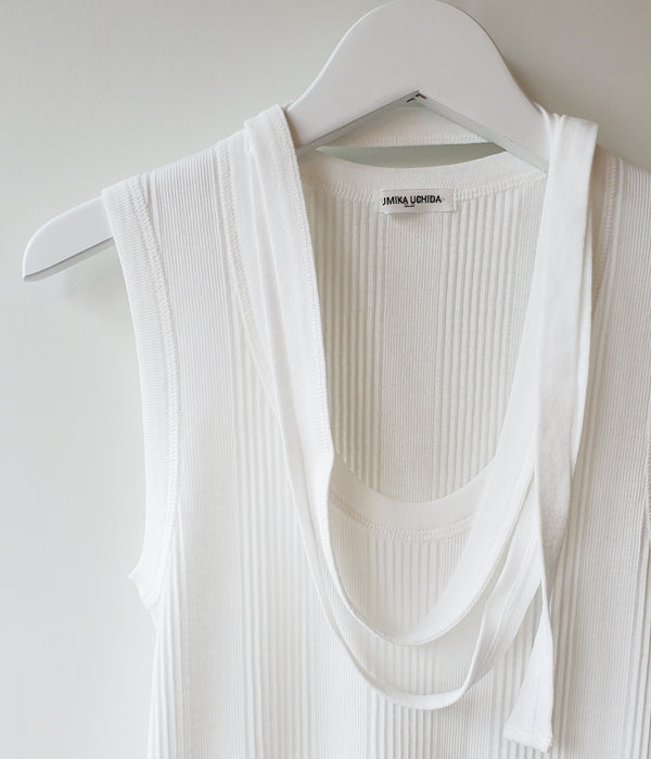 FUMIKA_UCHIDA/DOUBLE RIB U-NECK NEEDLE DRAWING NO-SLEEVE(WHITE)