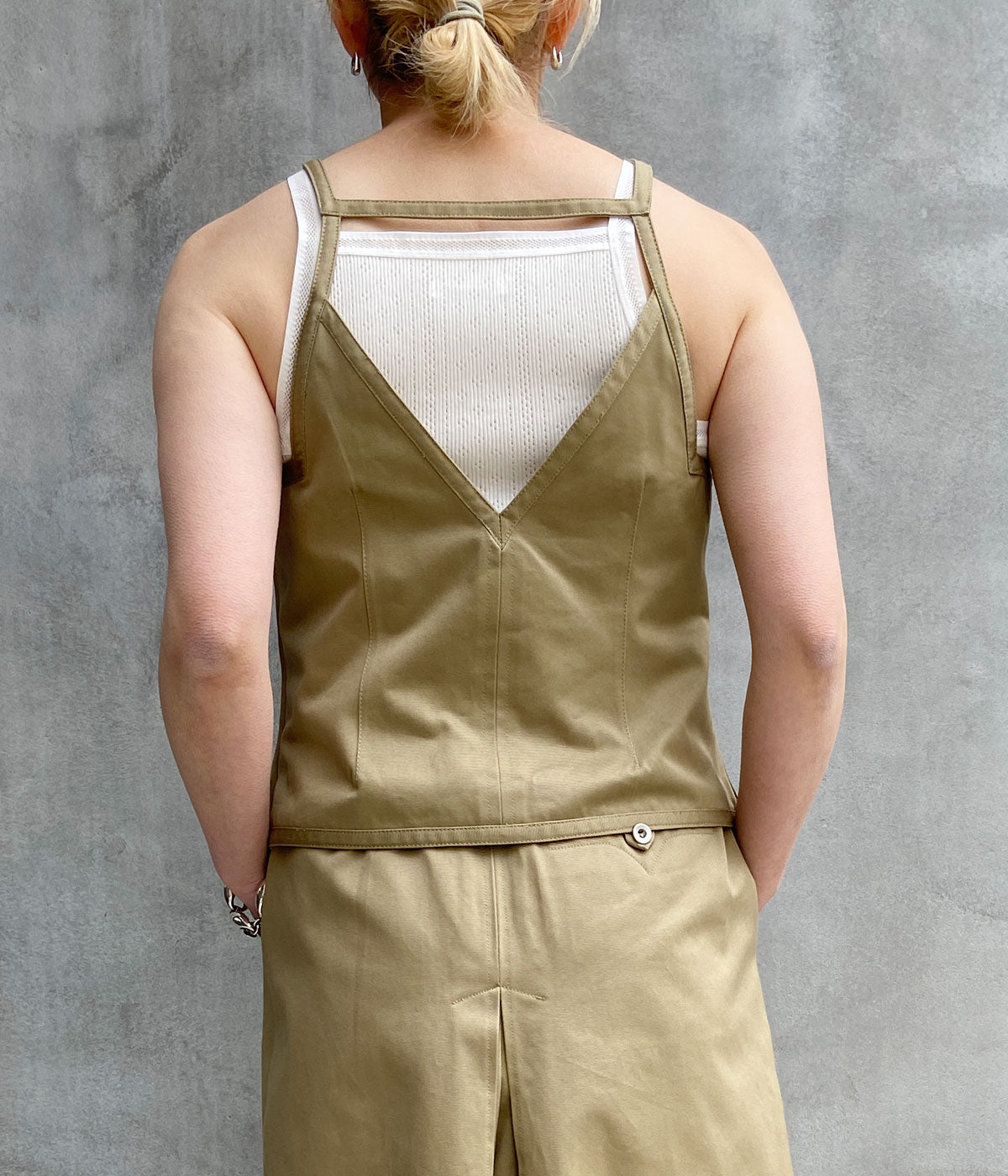 FUMIKA_UCHIDAからEYELET RIB STITCH CAMISOLEが入荷しました。オーガニックコットンを使用したテレコアイレットジャージーで作成したリブキャミソール。懐かしみのあるアイレット素材をストレッチメッシュテープを使用した直線的なアウトラインでモダンにデザイン。