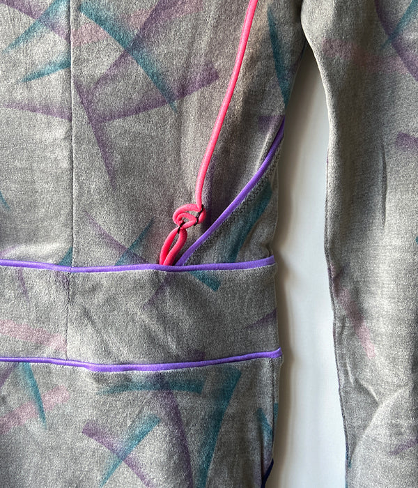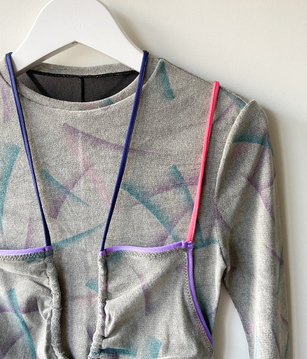 FUMIKA_UCHIDAからFLOCKY PRINTED TULLE DOUBLE-FRONT BODYSUITが入荷しました。レーヨンフロッキーを全面に加工したナイロンチュールを下地に使用し、さらにその上からオリジナルのインクジェットプリントを施したチュール素材のボディースーツ。長袖の上にキャミソールを重ねて着ているように見え、アウトドアを意識したポジティブな色使いでのトリミングやストラップでアクティブな印象です。胸元のストラップは上から羽織った時に首元のアクセントとなるディテール。股下のスナップテープで開閉。
