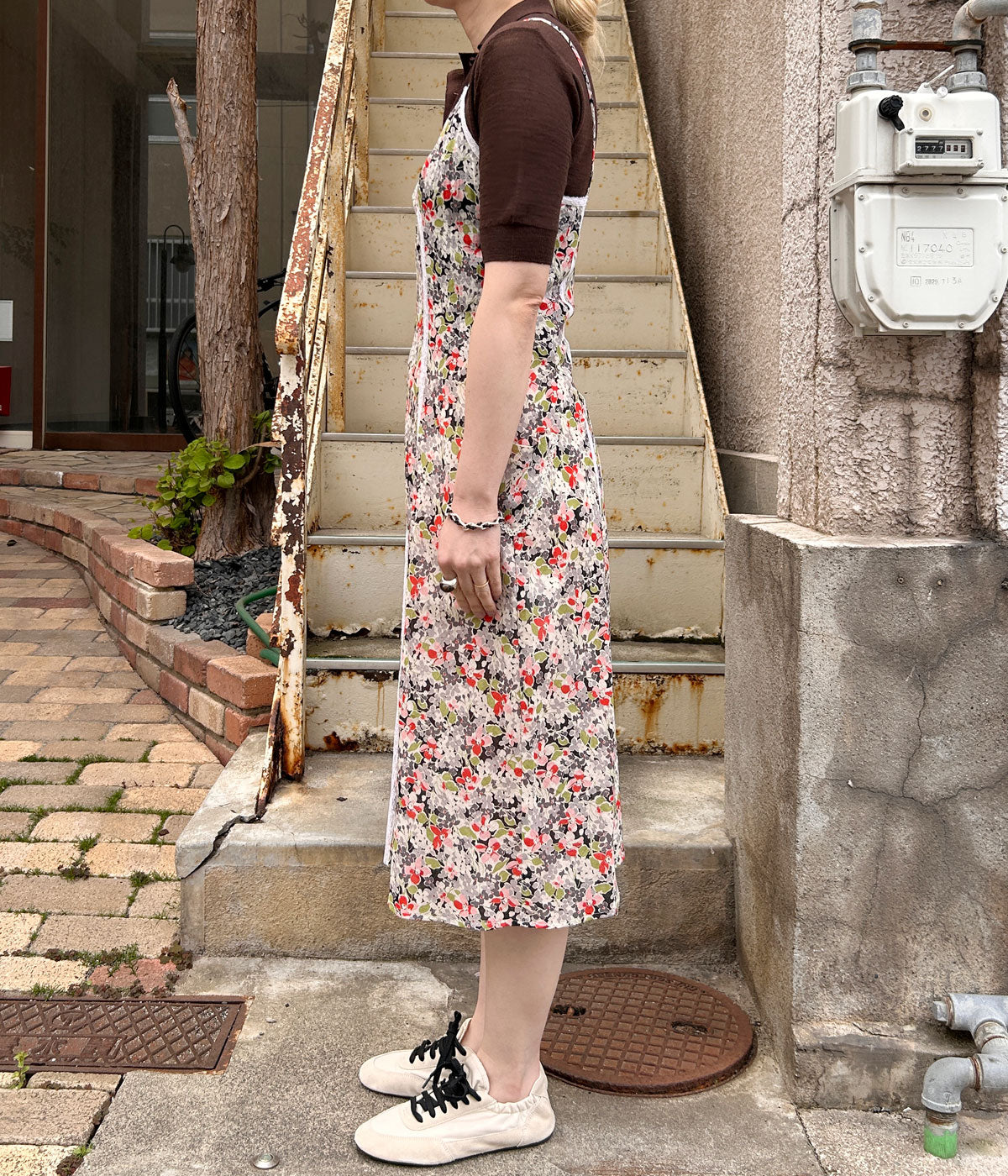 FUMIKA_UCHIDAからFLORAL VOILE SLIP DRESSが入荷しました。フィードサックのような表情を持つボイル素材に、ハンドスクリーンで施したフラワープリントをのせたスリップドレス。腰位置に配した三角エプロンポケットがクラシカルなアクセントとなり、コンパクトなアウトラインに立体感を添えます。ワンウォッシュの天日干し加工を施しています。