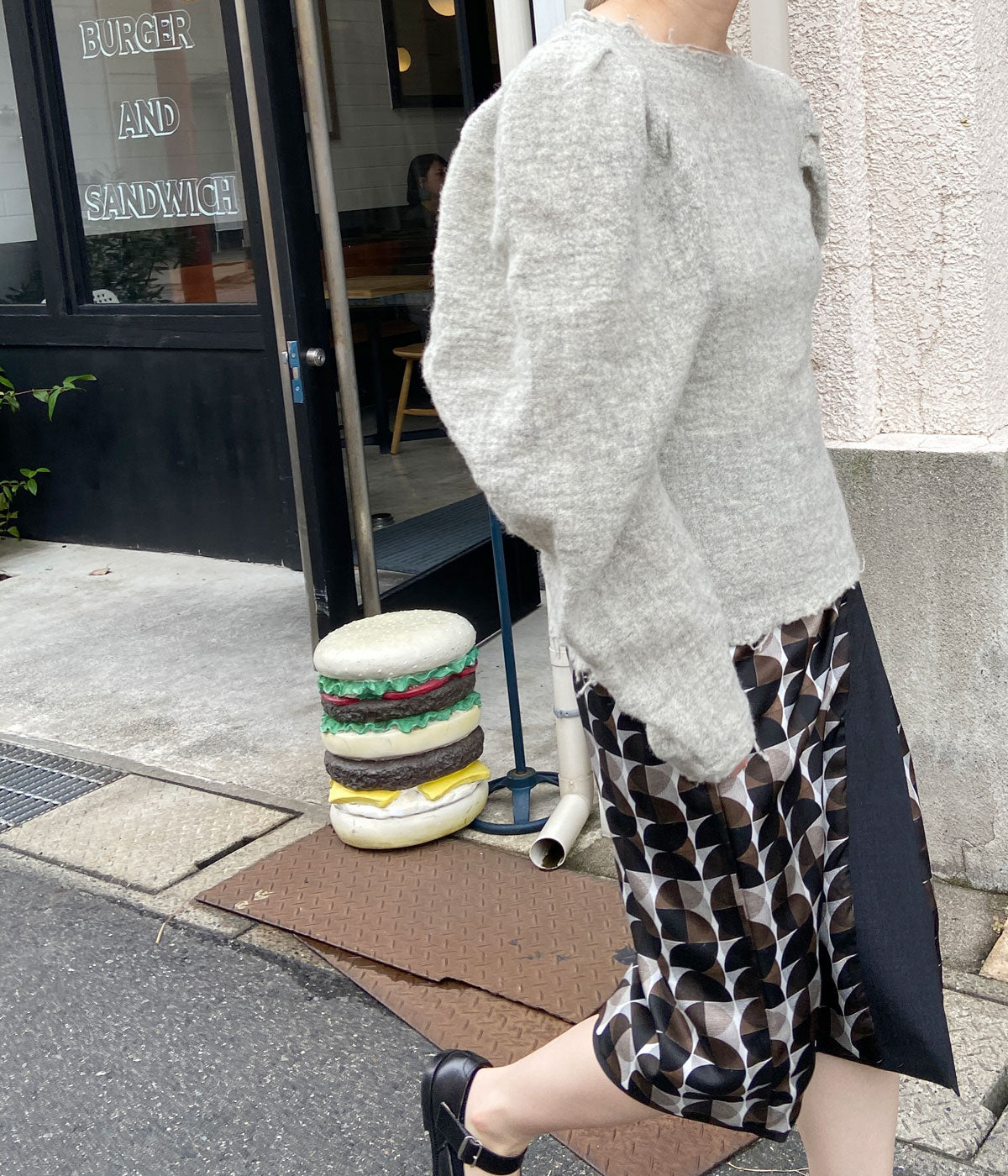FUMIKA_UCHIDA/GAUZE SHETLAND PUFF-SLEEVE TOP(TOP GREY)