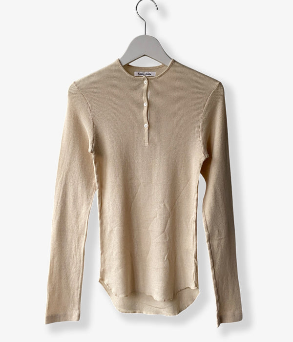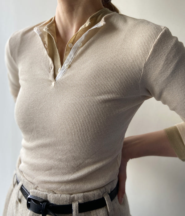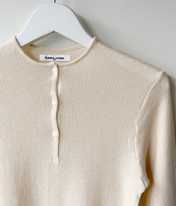 FUMIKA_UCHIDA/GAUZE WAFFLE HENLEY-NECK TOP (OFF WHITE)