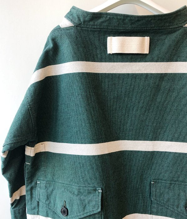 FUMIKA_UCHIDAからGROSGRAIN WIDE BORDER LONG SLEEVE P/Oが入荷しました。ガシッとした高密度の帆布ボーダー生地で製作したジャケット風なアイテム。前後に配置したビッグポケットとサイドスリットがポイントのアイテムです。