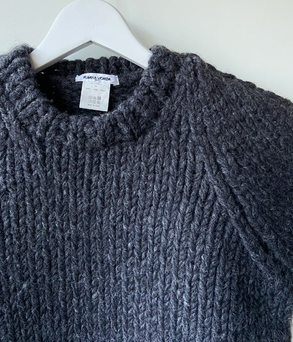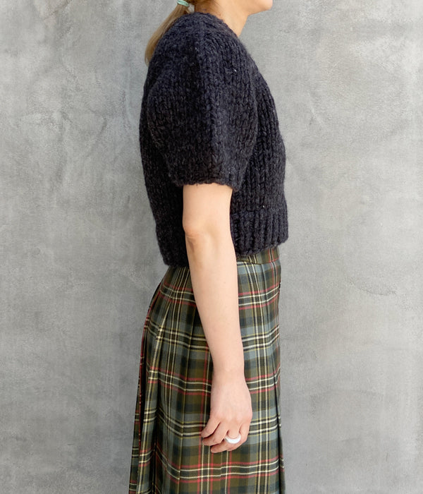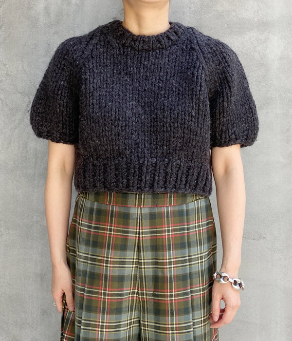 FUMIKA_UCHIDA/HAND KNITTED SHORT SLEEVE SWEATER(CHARCOAL)