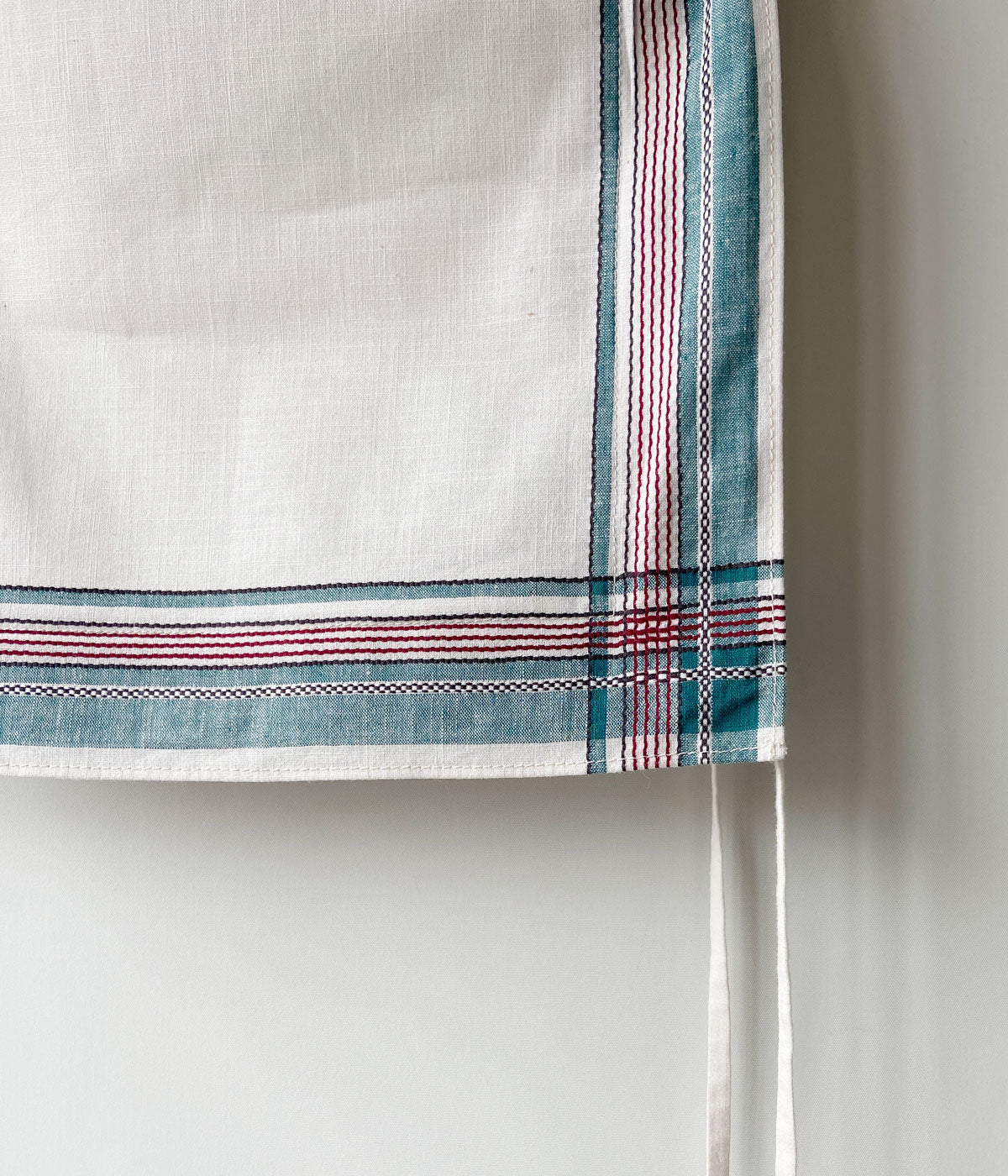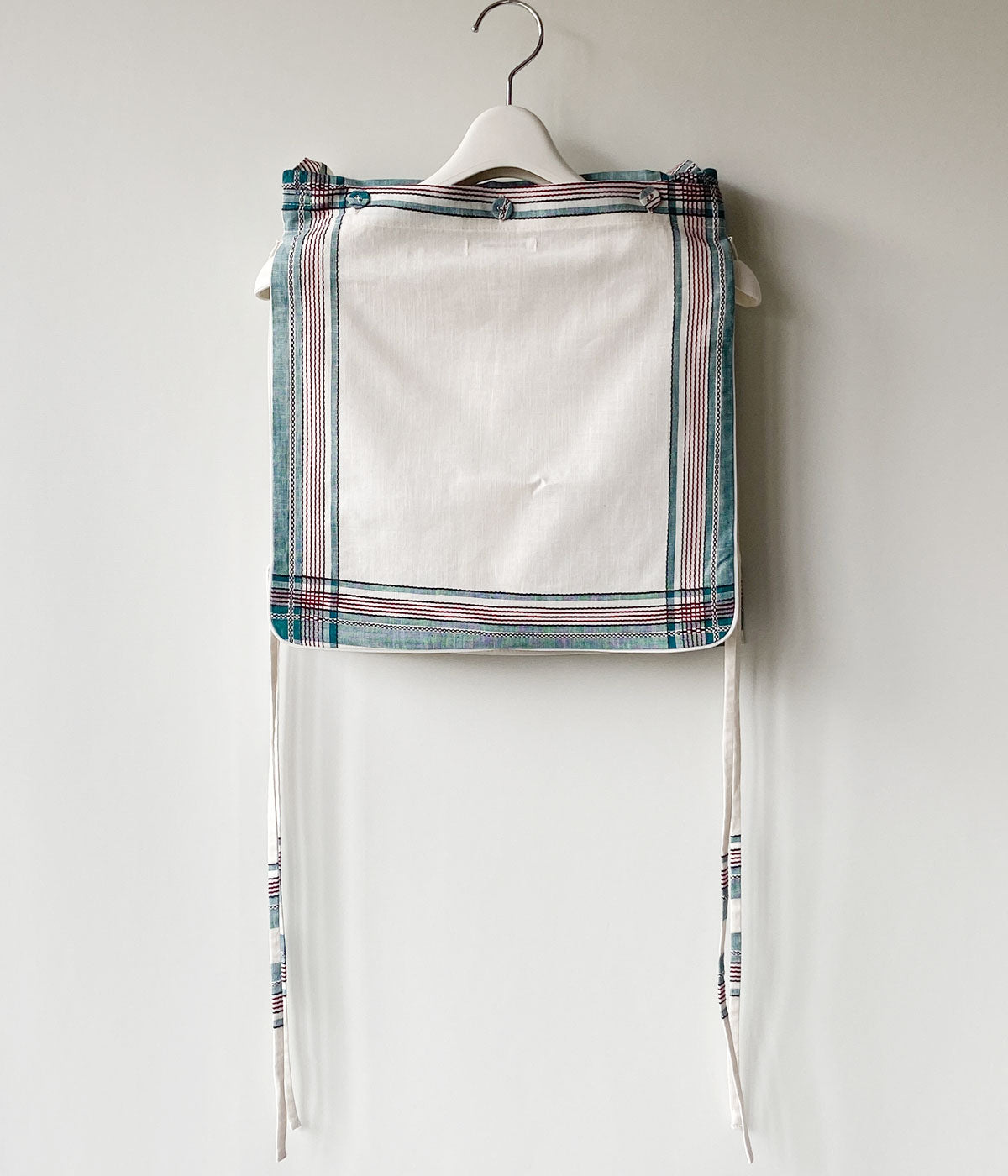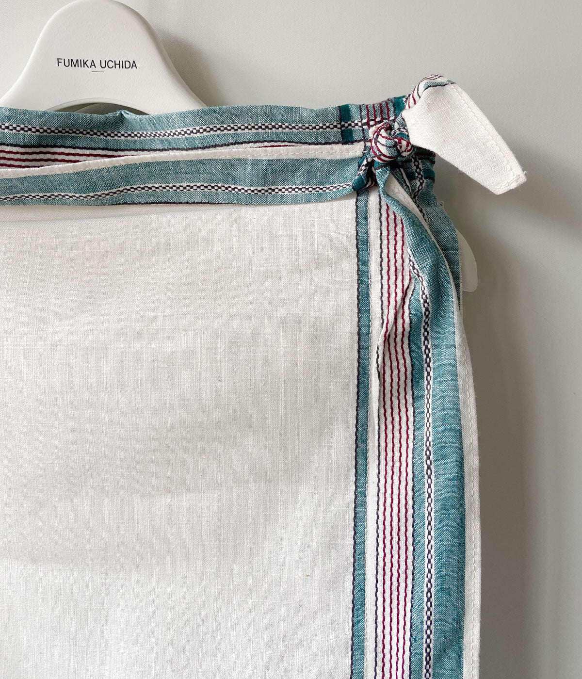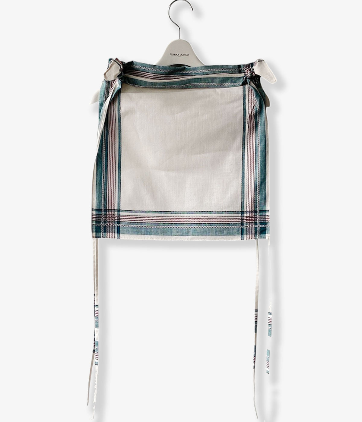 FUMIKA_UCHIDAからHANDKERCHIEF BIB TOPが入荷しました。コットンリネン素材のハンカチ柄ブルオーバートップス。コットンリネンのムラ糸をベースに番手違いの糸を使ったドビー織機でハンカチらしいスクエアーの枠柄を作成。ハンカチの2次元感を纏うデザイン。コンパクトなビブデザインです。