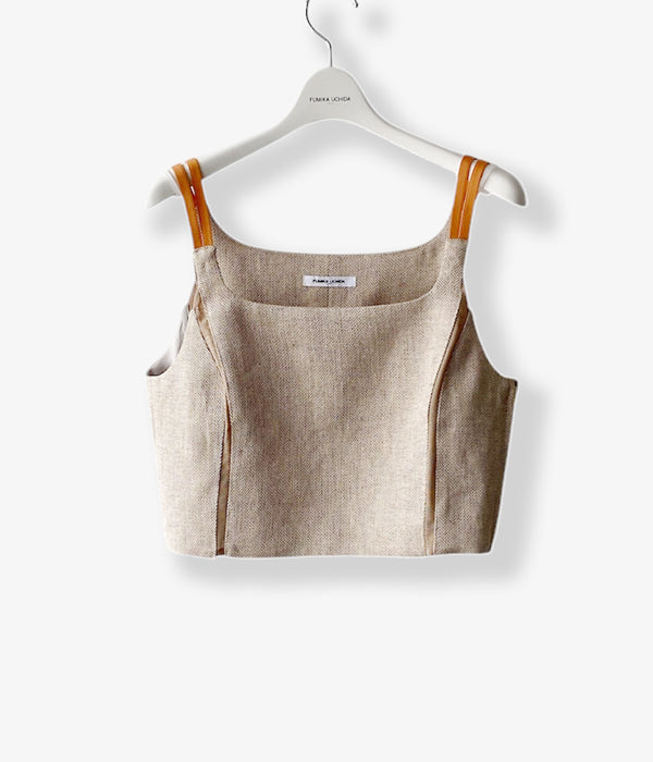 FUMIKA_UCHIDA/HEMP SUITING BUSTIER TOP(BEIGE HERRINNGBONE)