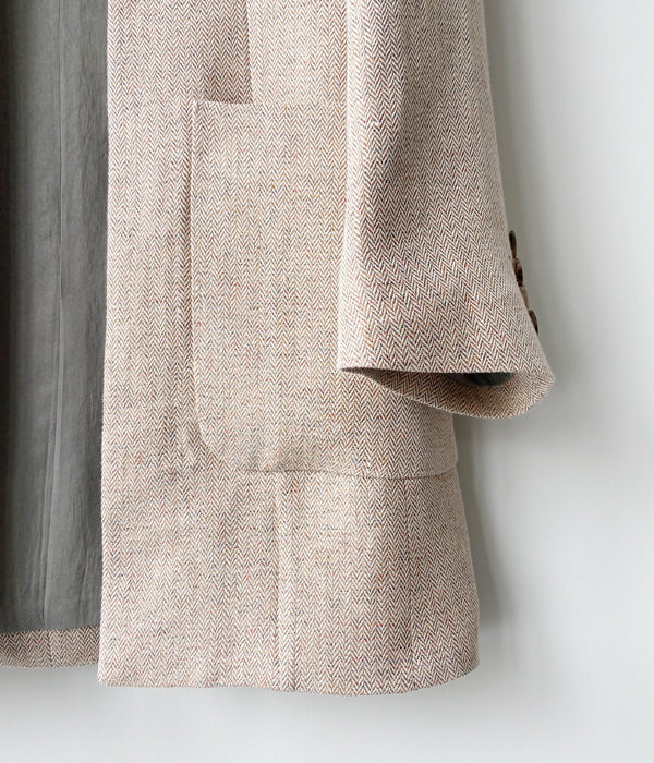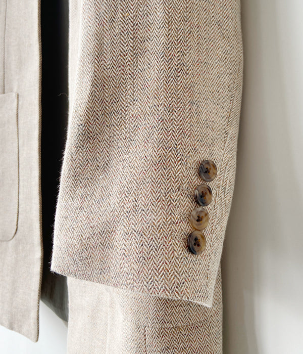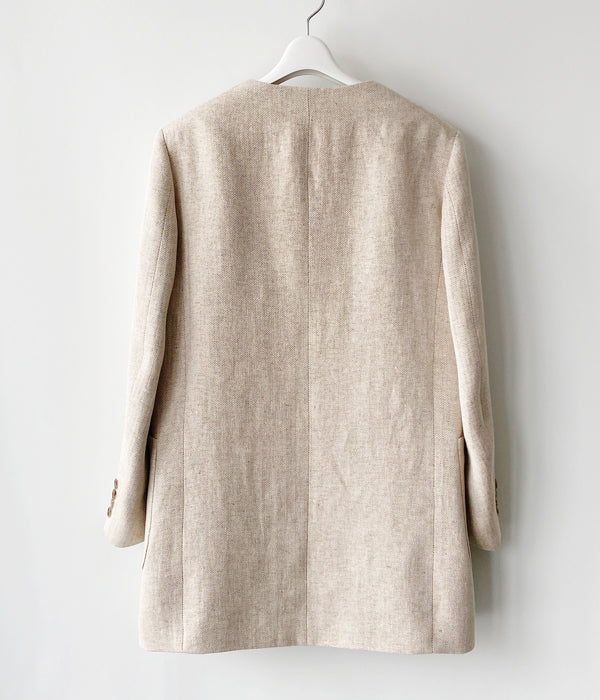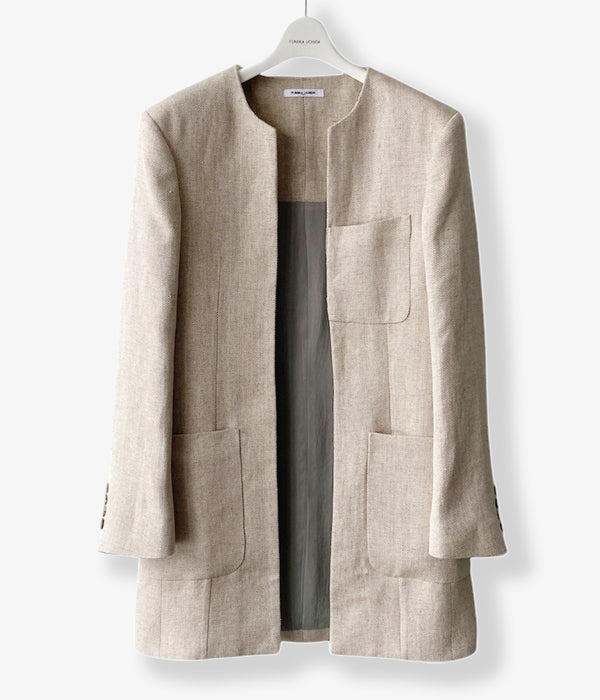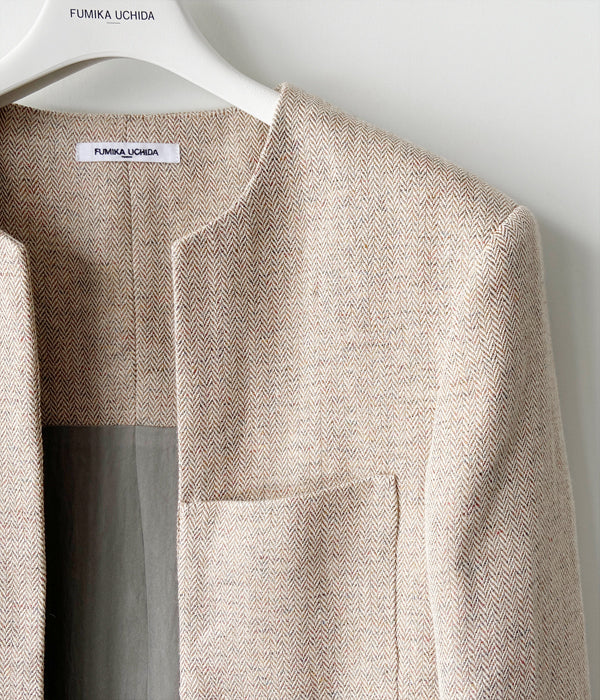 FUMIKA_UCHIDA/HEMP SUITING COLLARLESS JACKET(BEIGE HERRINNGBONE)