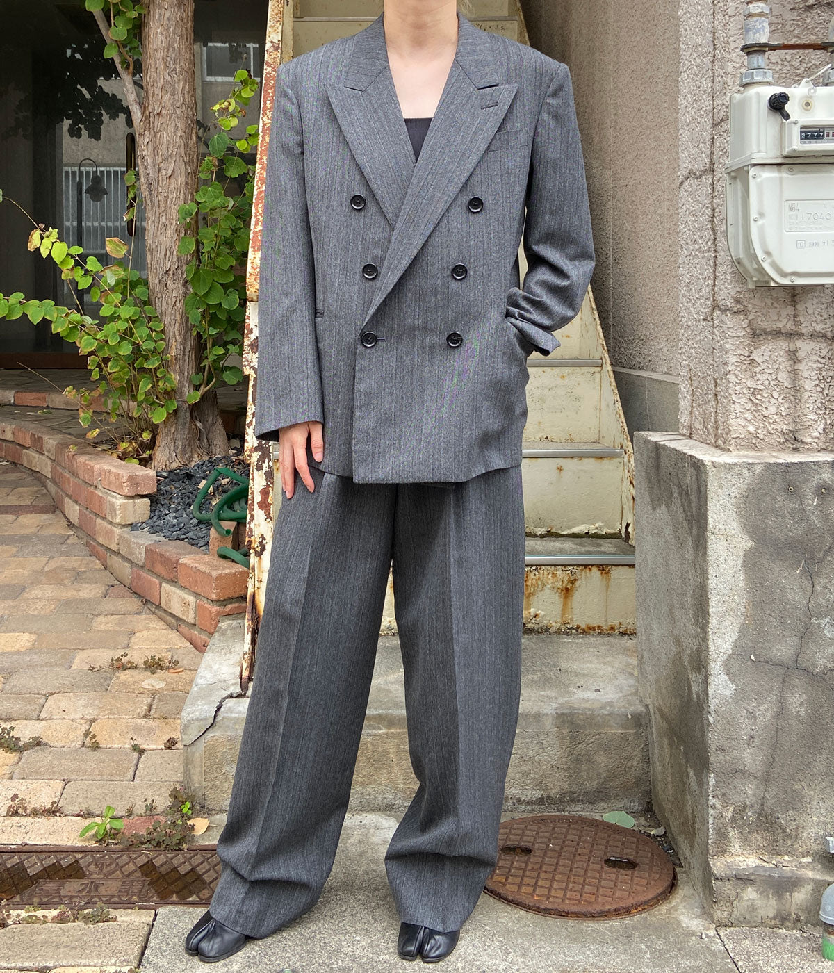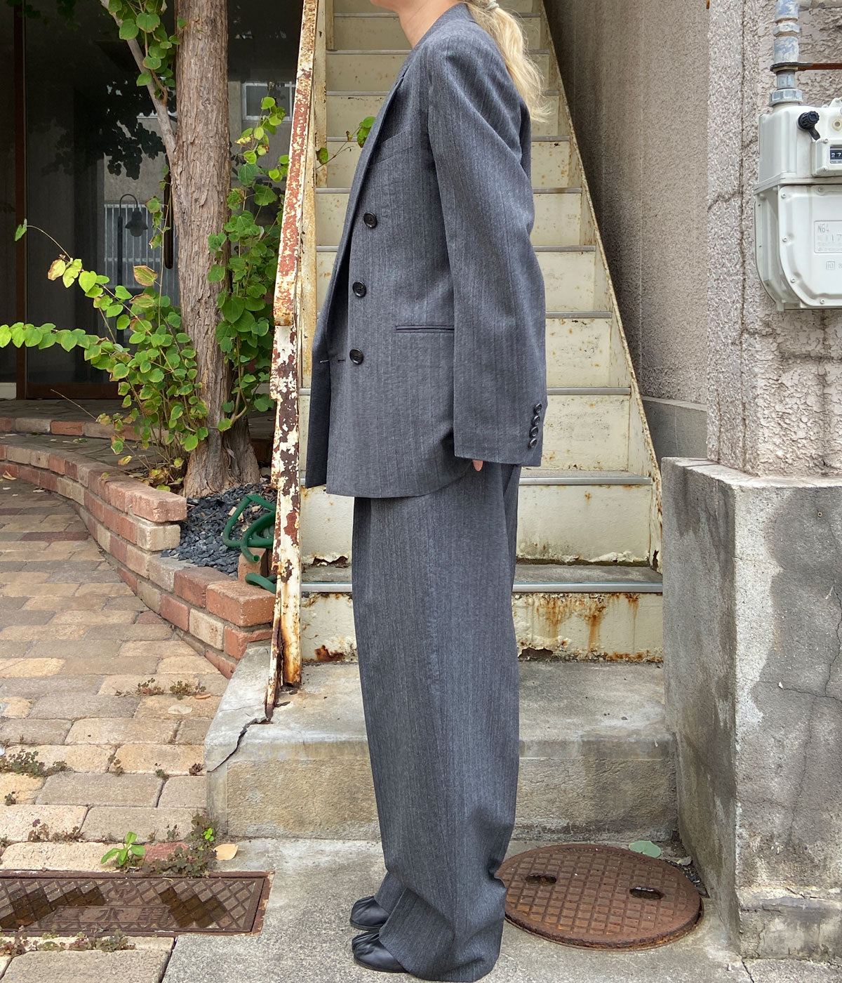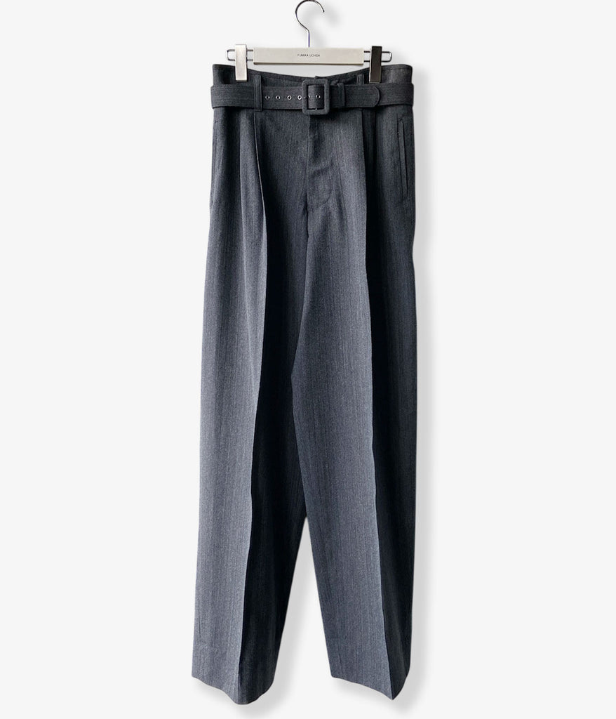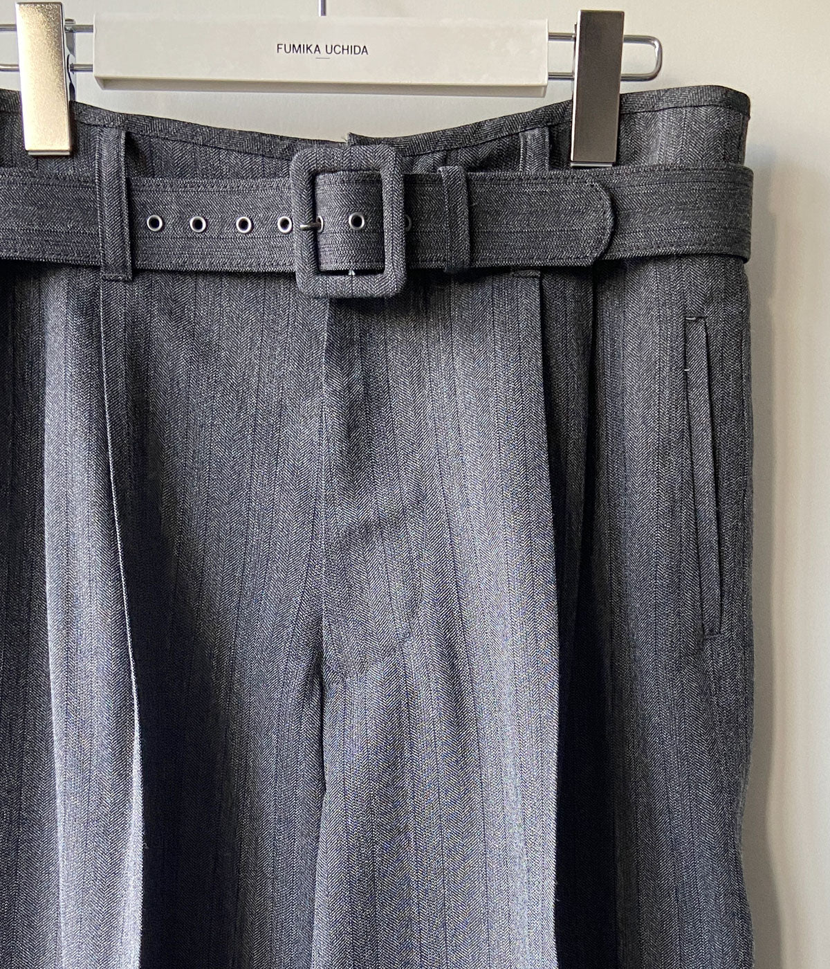 FUMIKA_UCHIDA/HERRINGBONE BELTED WIDE 2TUCK PANTS(GREY)