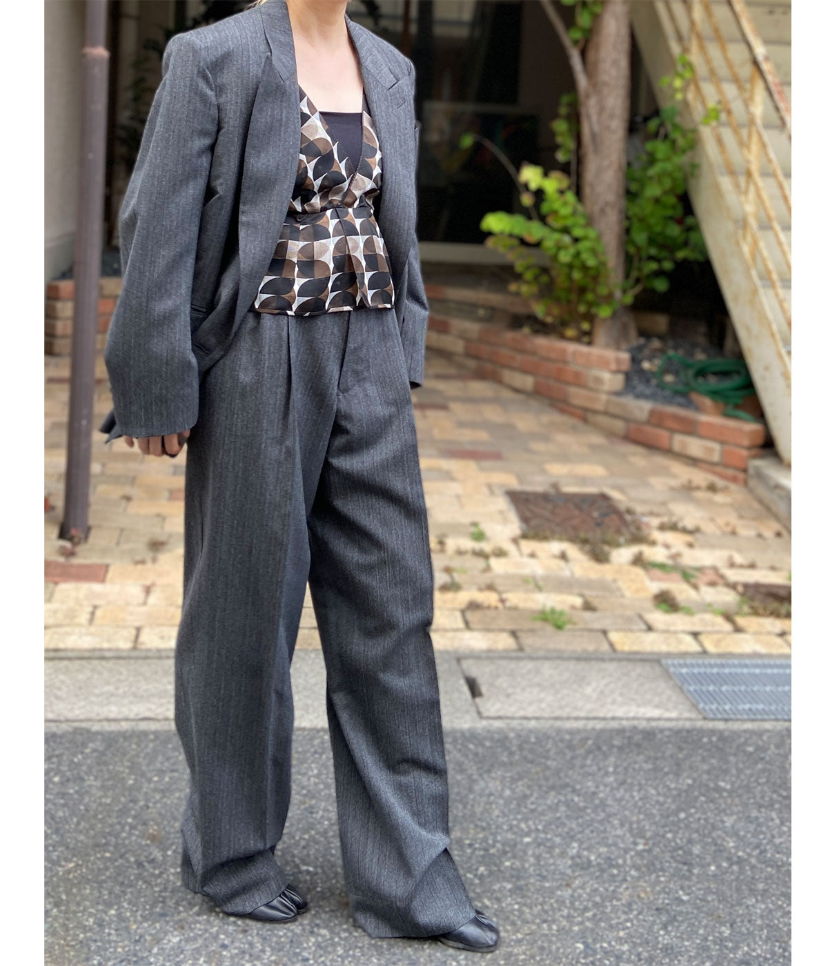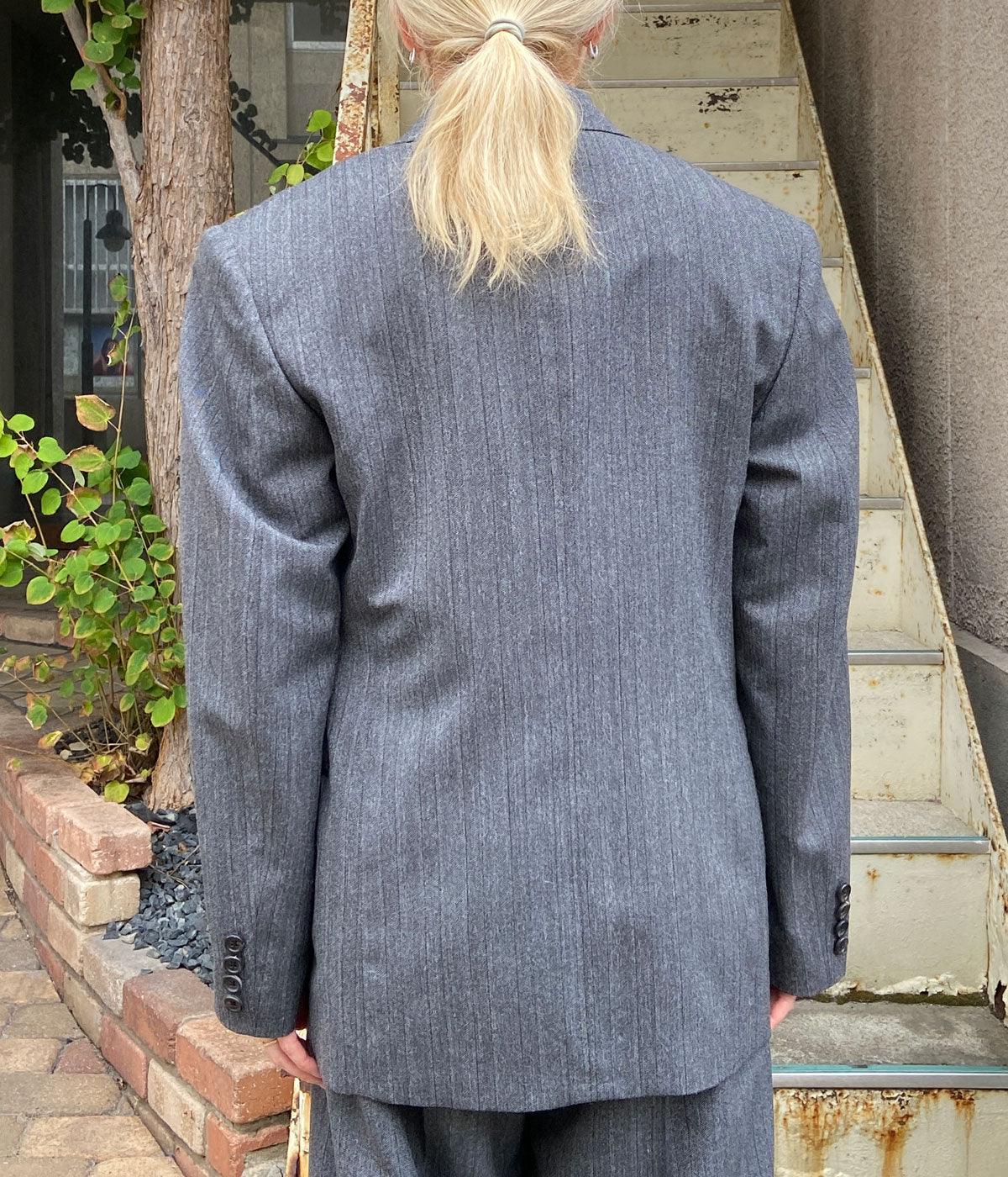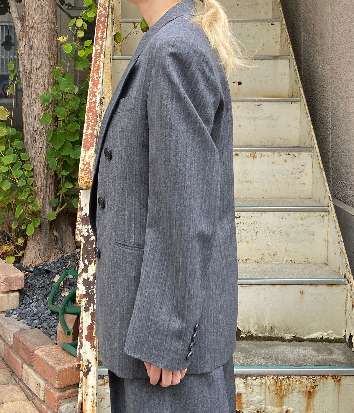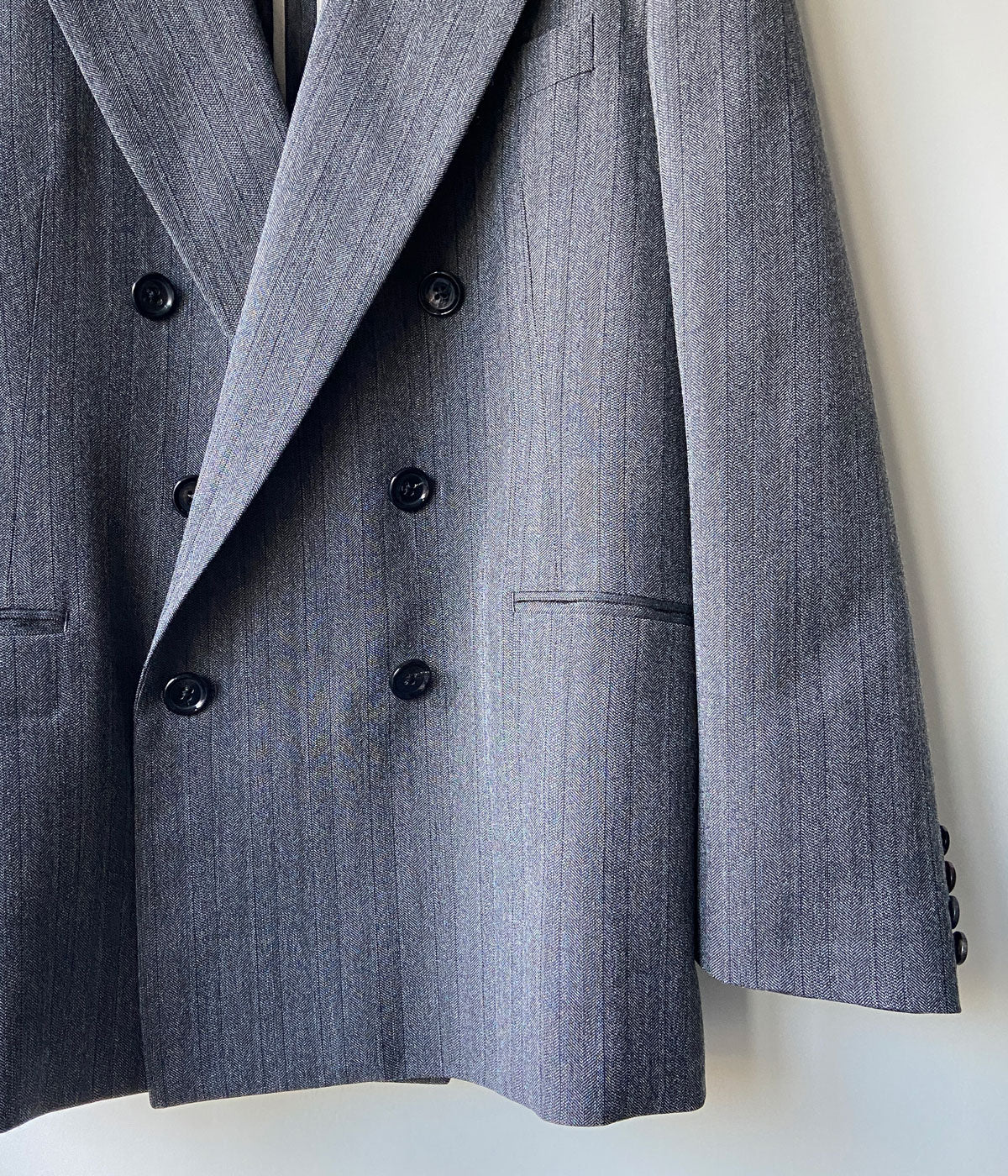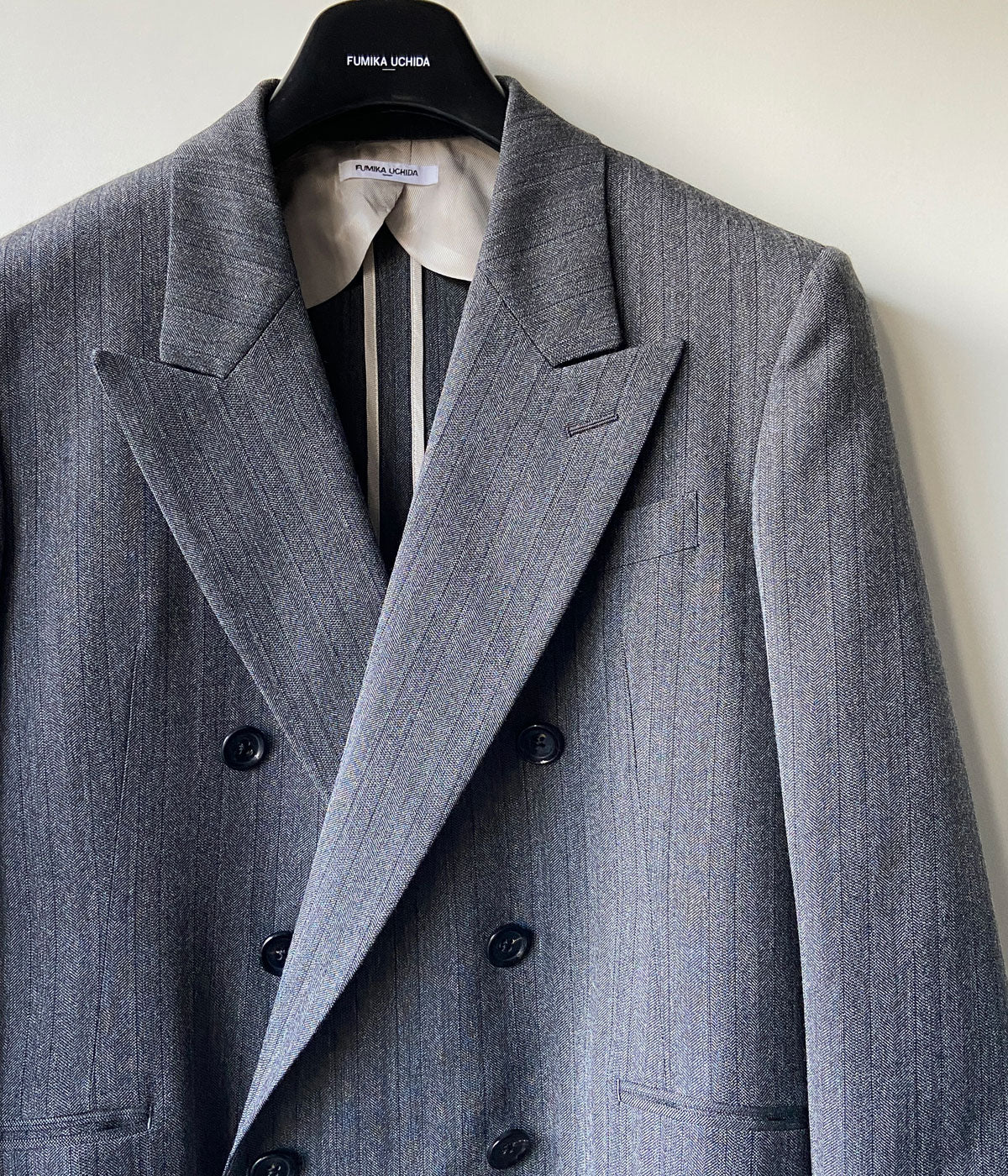 FUMIKA_UCHIDA/HERRINGBONE PEAKED LAPEL DOUBLE JACKET(GREY)