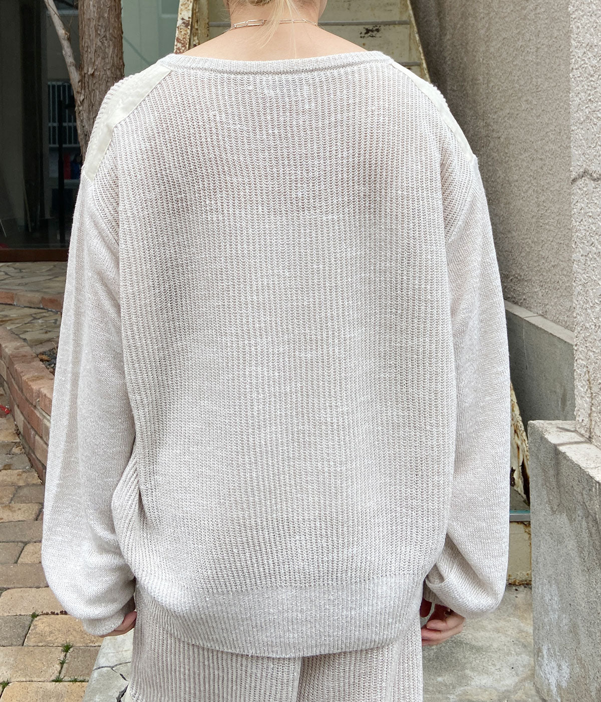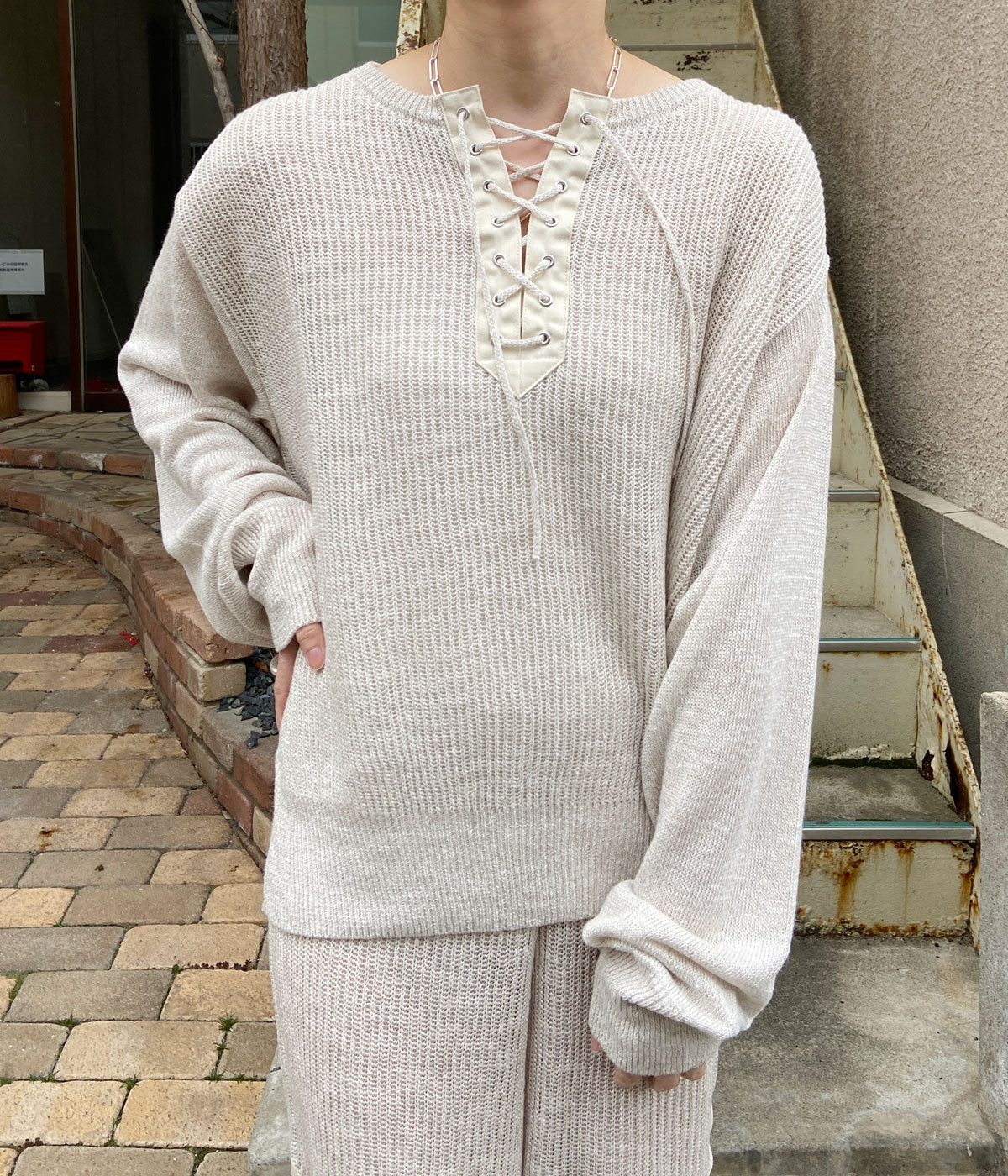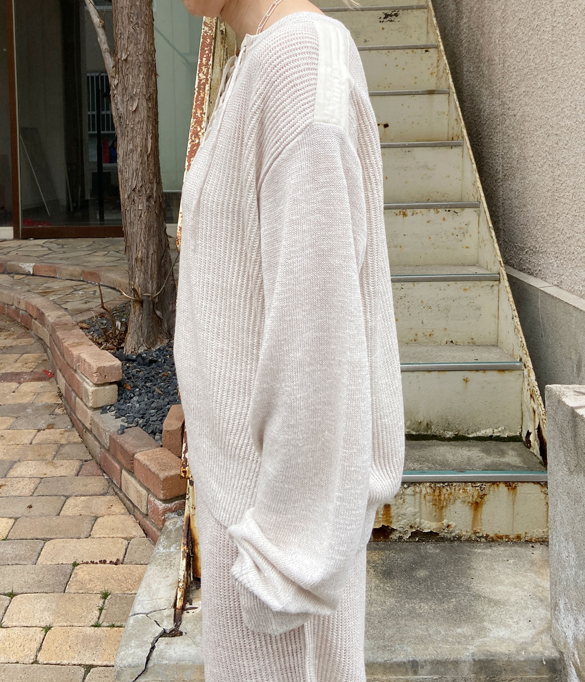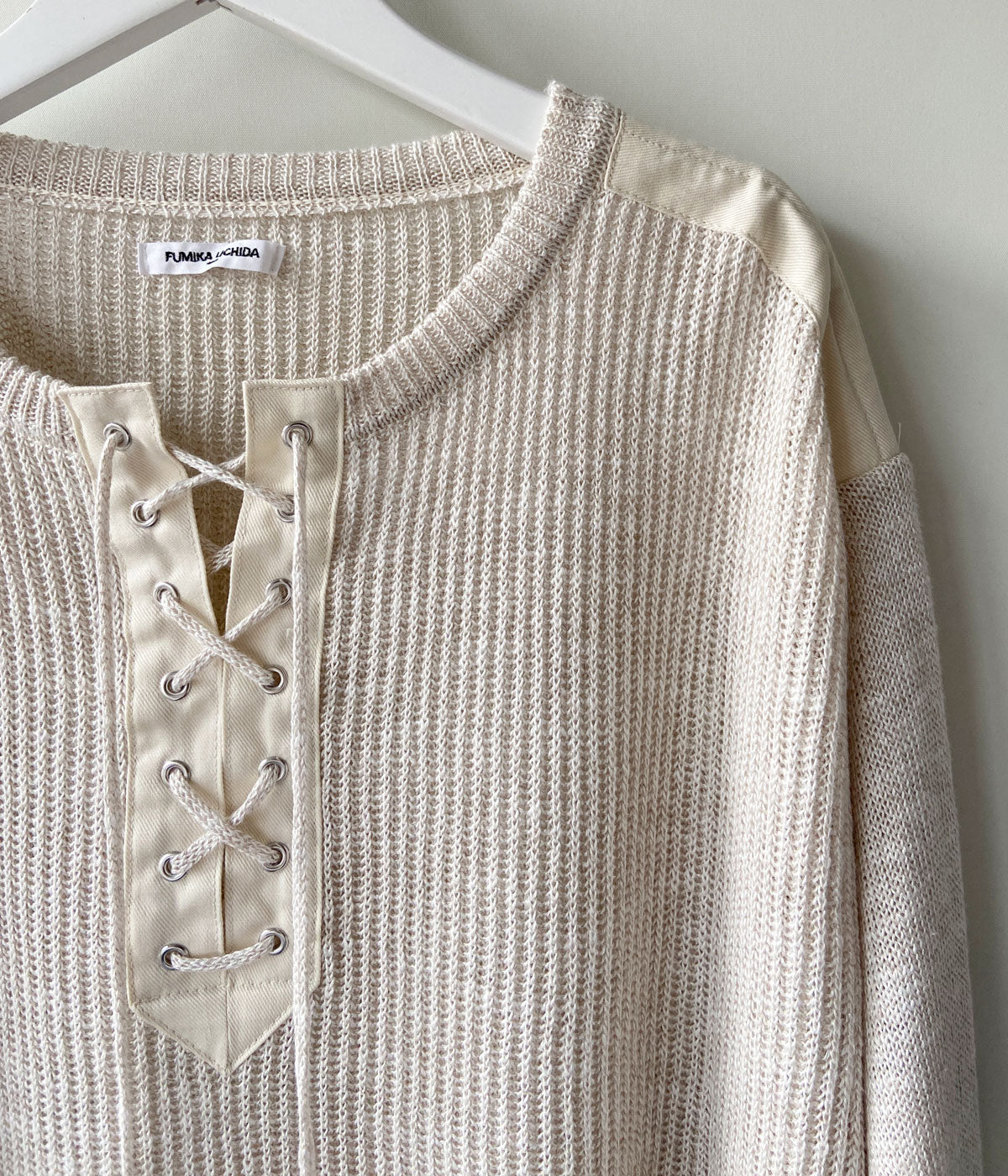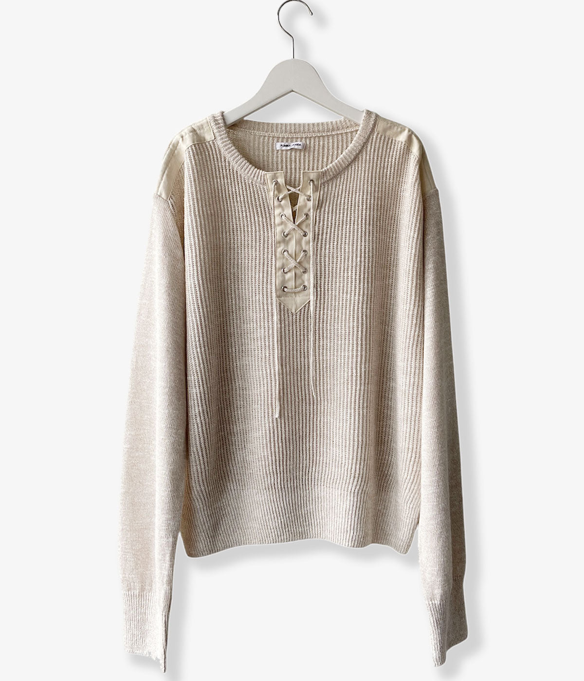 FUMIKA_UCHIDA/KNITTED LINEN LACE-UP LONG SLEEVE(OYSTER)