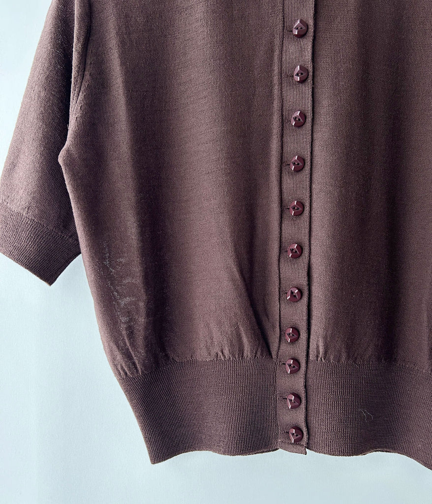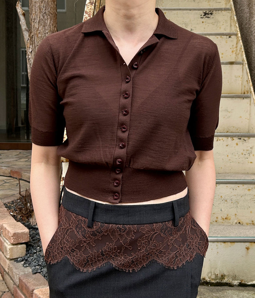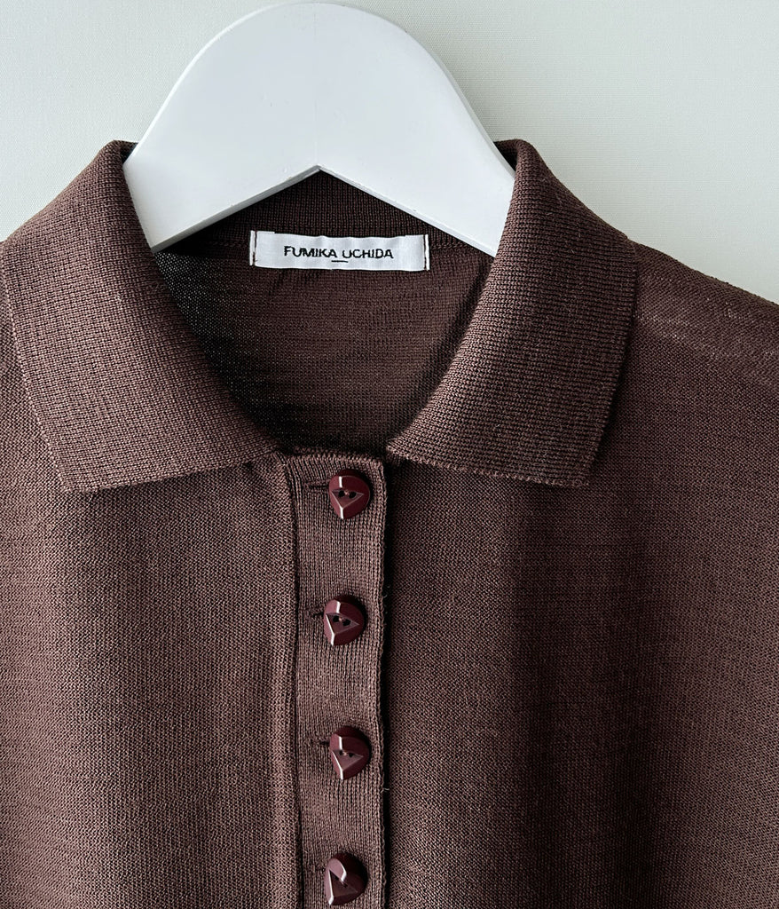 FUMIKA_UCHIDA/KNITTED POLO CARDIGAN(BROWN)