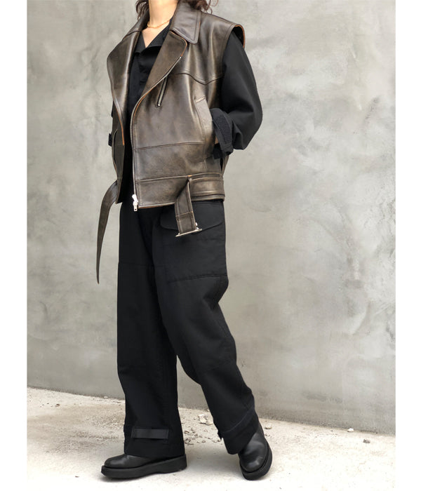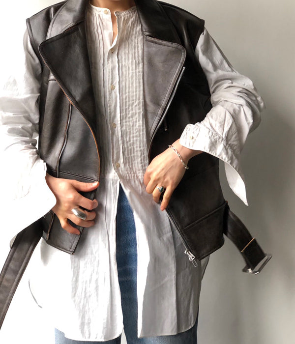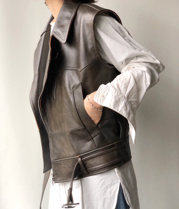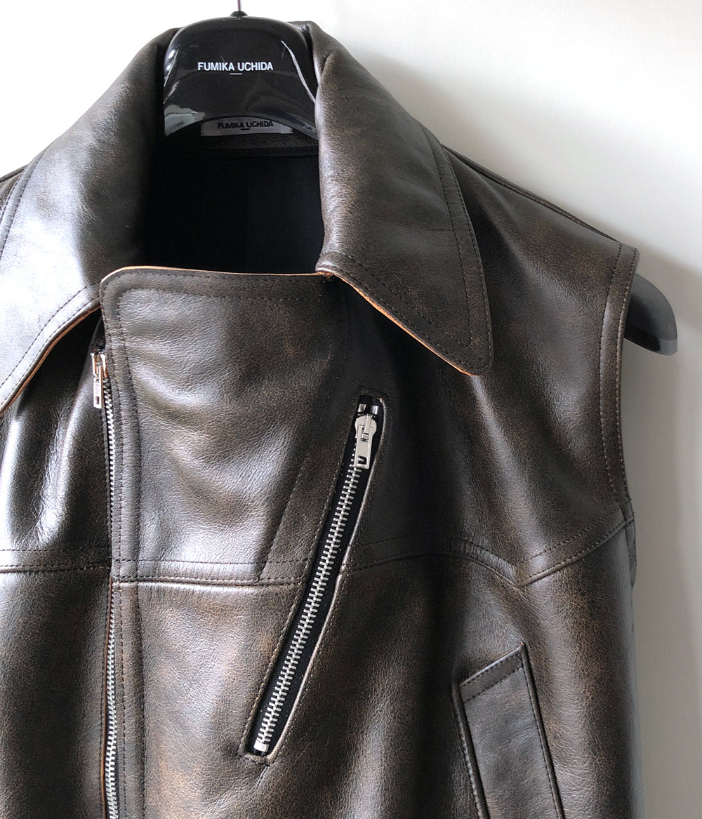 FUMIKA_UCHIDA/LEATHER SLEEVELESS DOUBLE RIDERS JACKET(BLACK)