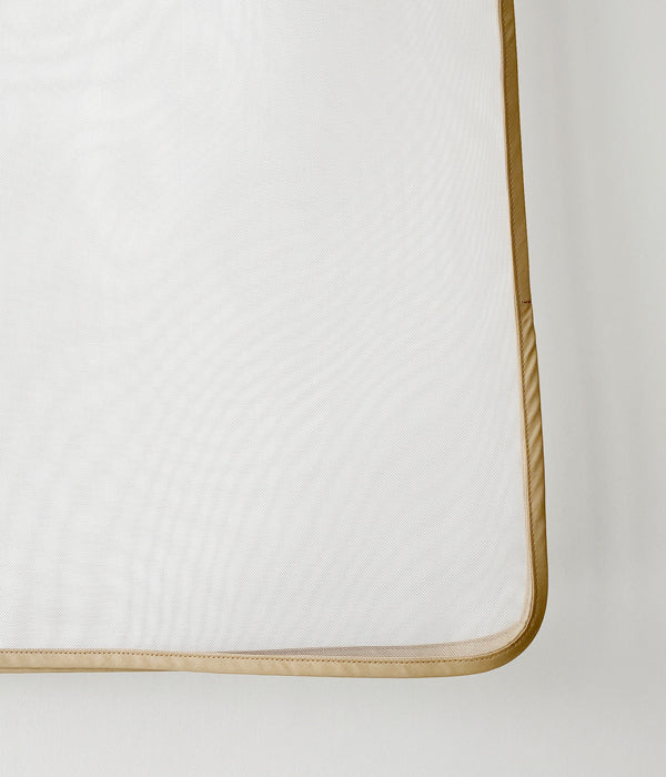 FUMIKA_UCHIDAからMESH SHEATH SKIRTが入荷しました。ナイロン素材のメッシュ生地で作るシアーな膝丈スカート。ナイロン100%のイタリア製ナイロンチュールを使用しています。しっかりと太さのある透明な糸での透け感とハリの強さがありながら肌当たりの良い生地。ボリュームを出すための中材に使われる素材を使って、直線的でミニマムなアウトラインにデザイン。