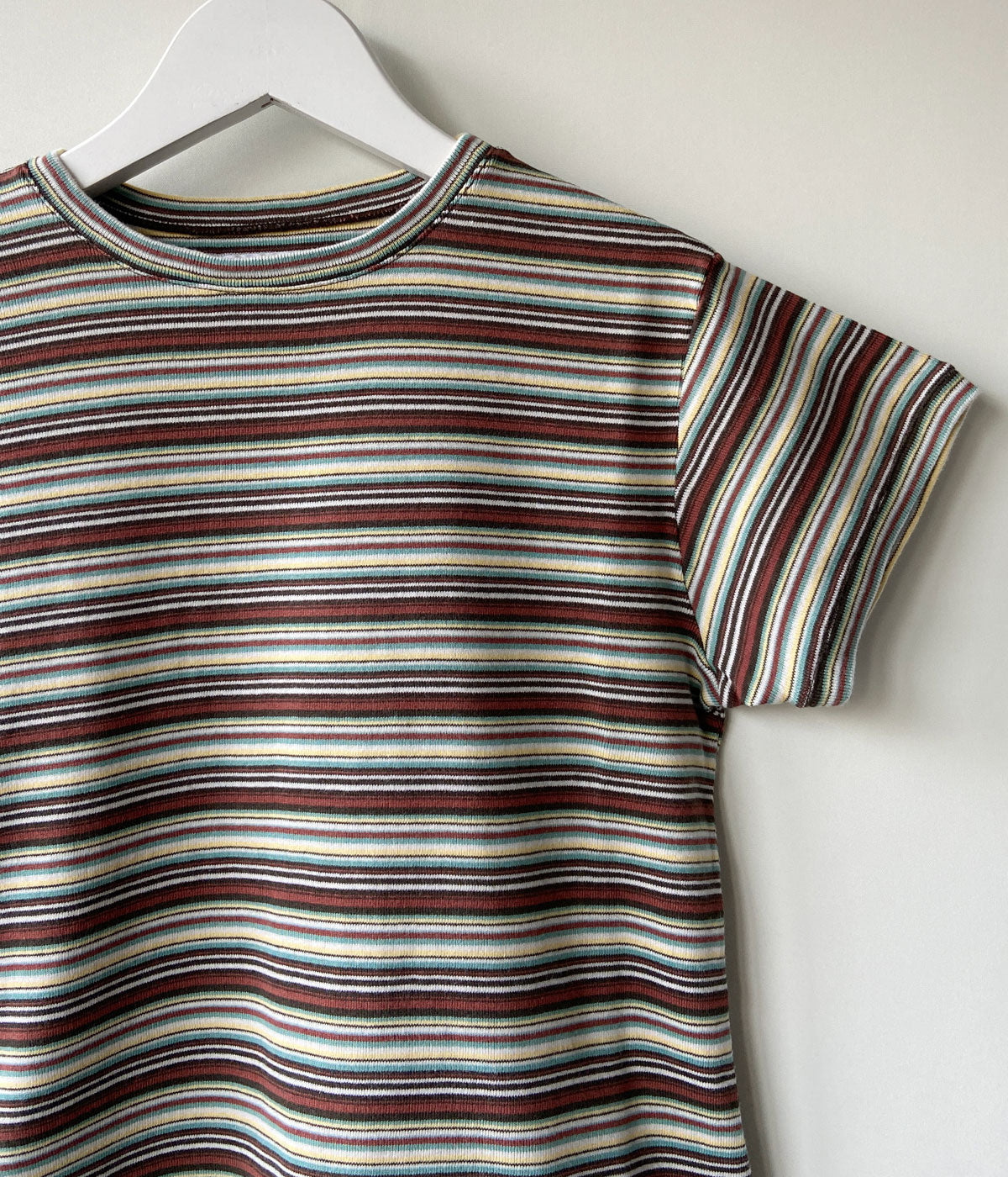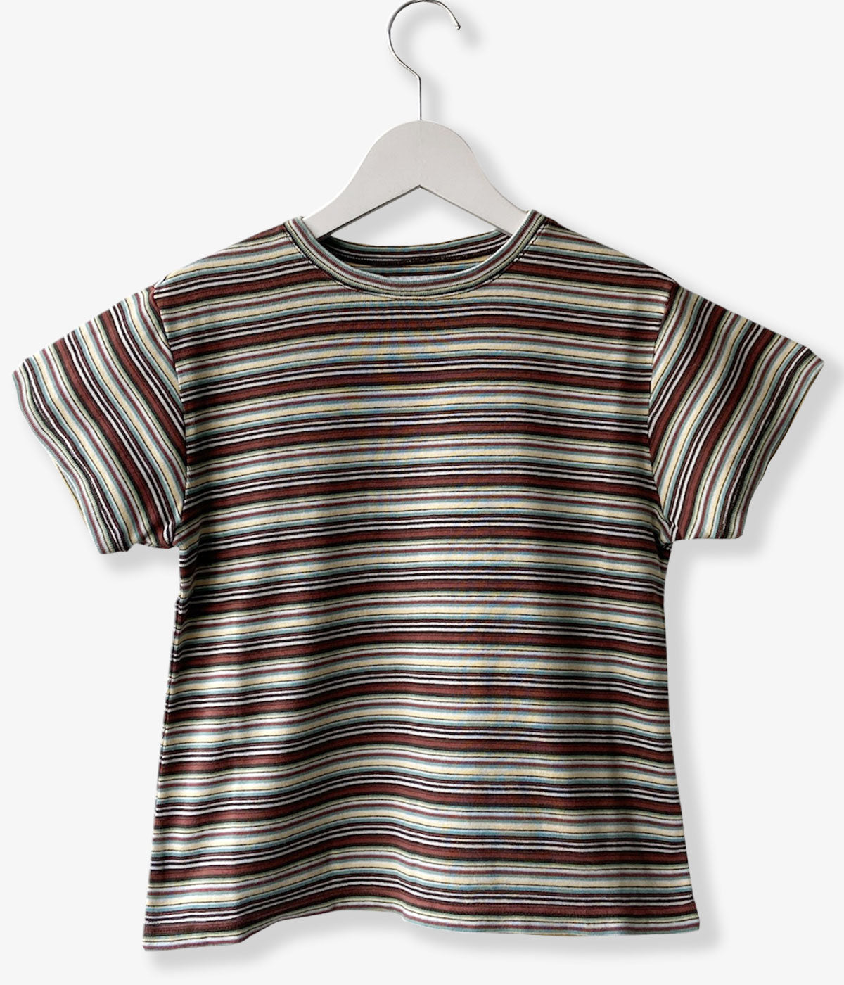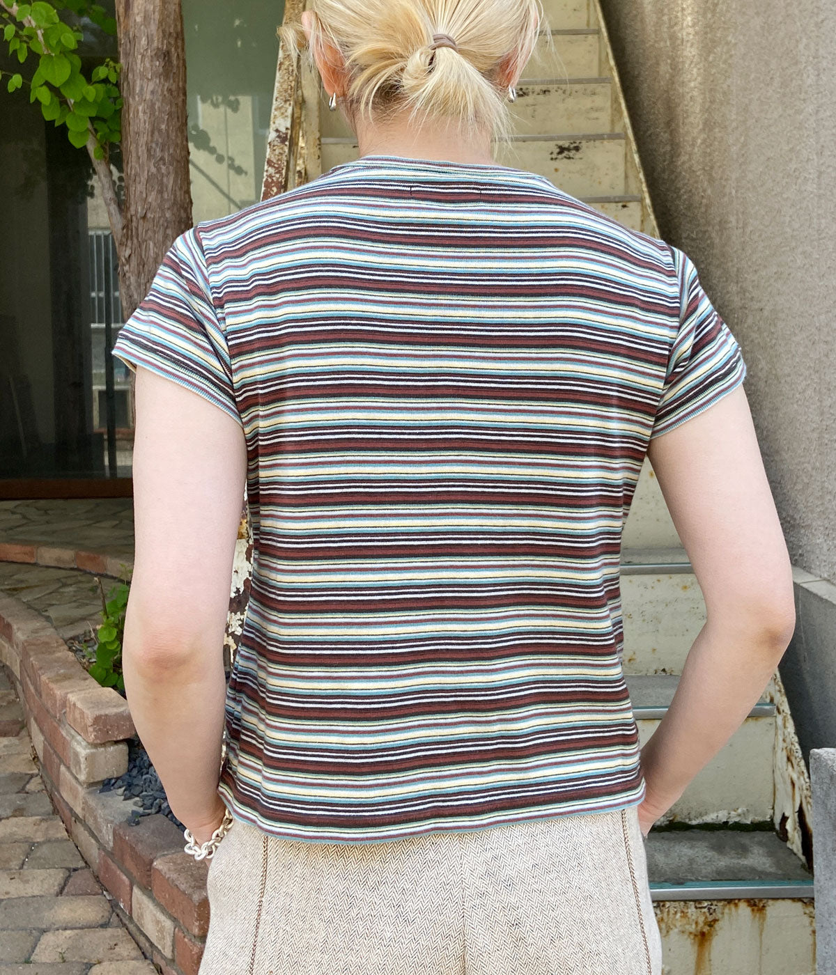 FUMIKA_UCHIDA/MULTICOLOR STRIPE T-SHIRT(BROWN/BORDEAUX/GREEN)