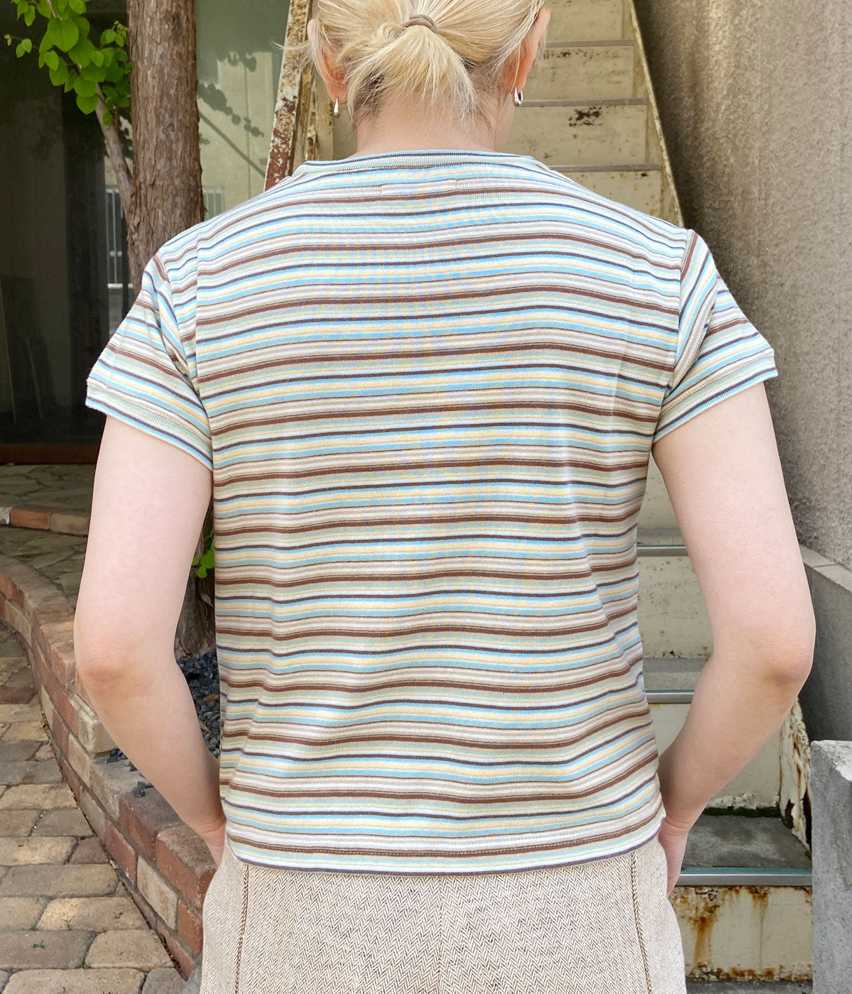 FUMIKA_UCHIDA/MULTICOLOR STRIPE T-SHIRT(WHITE/BEIGE/BROWN)