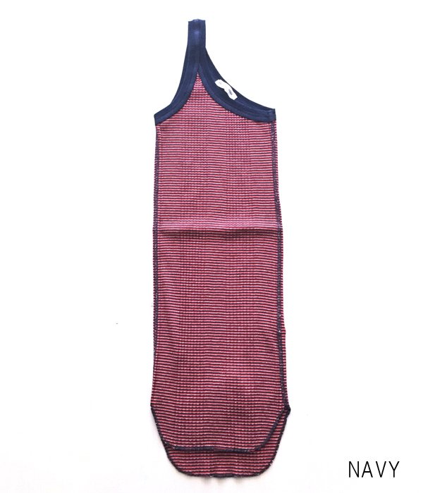 FUMIKA_UCHIDAからNEEDLE DRAWING BORDER ONE-SHOULDER TANK TOPが入荷しました。今季は細いピッチのボーダーで登場の定番ワンショルダータンクトップ。ドライタッチの糸を使用し、退色したような色で染めた糸を丸胴で編み立てています。