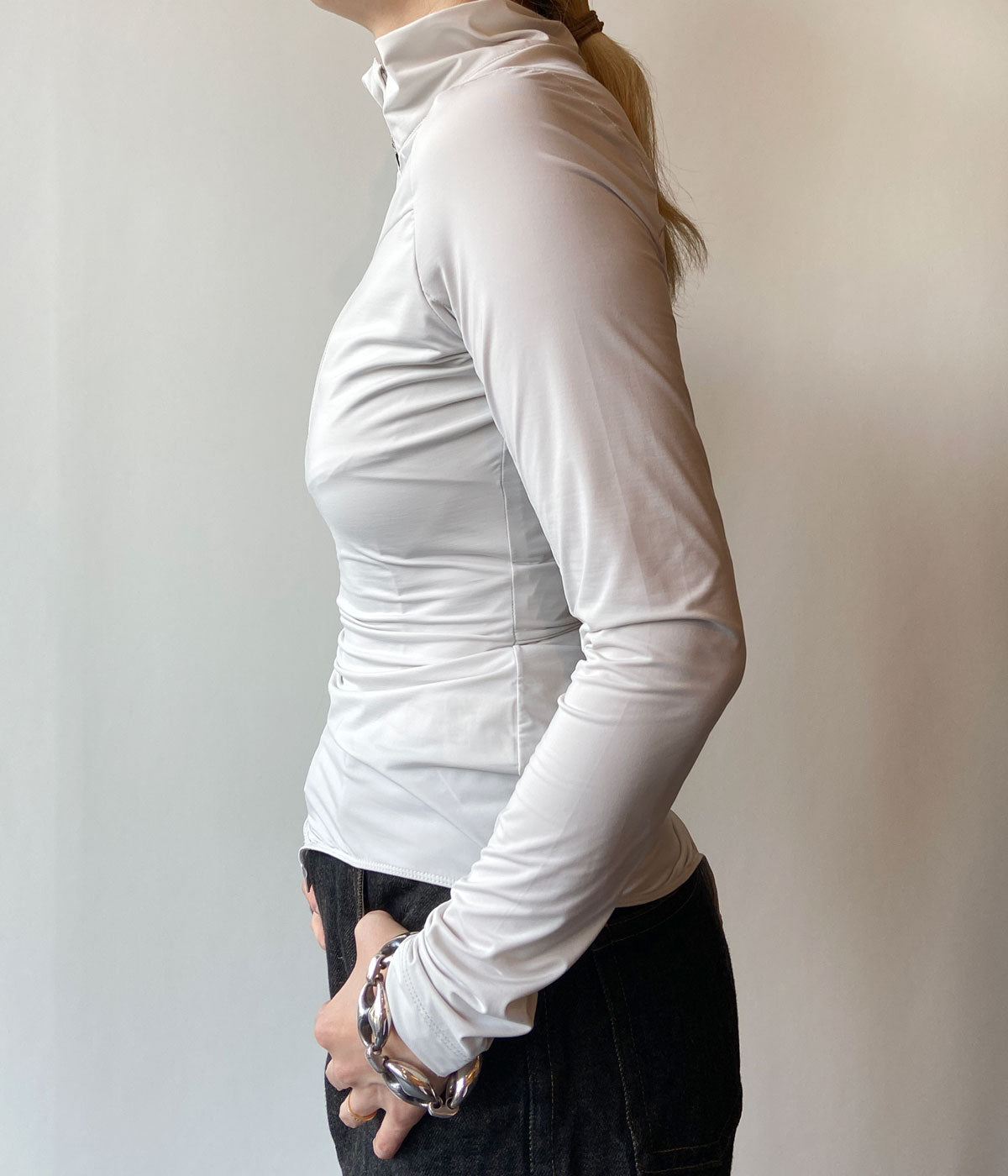 FUMIKA_UCHIDA/NYLON JERSEY HALF-ZIP BODYSUIT(LIGHT GREY)
