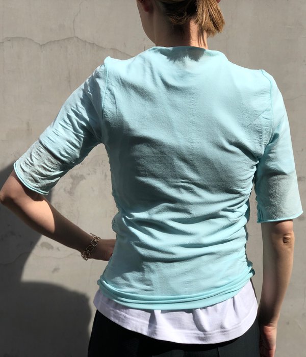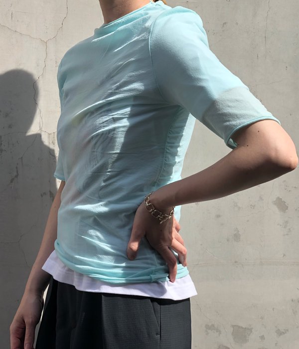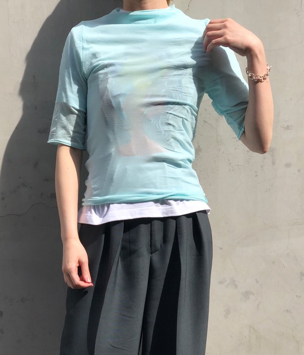 FUMIKA_UCHIDA/Nylon/MOCK-NECK SHORT-SLEEVE TOP(AQUABLUE)