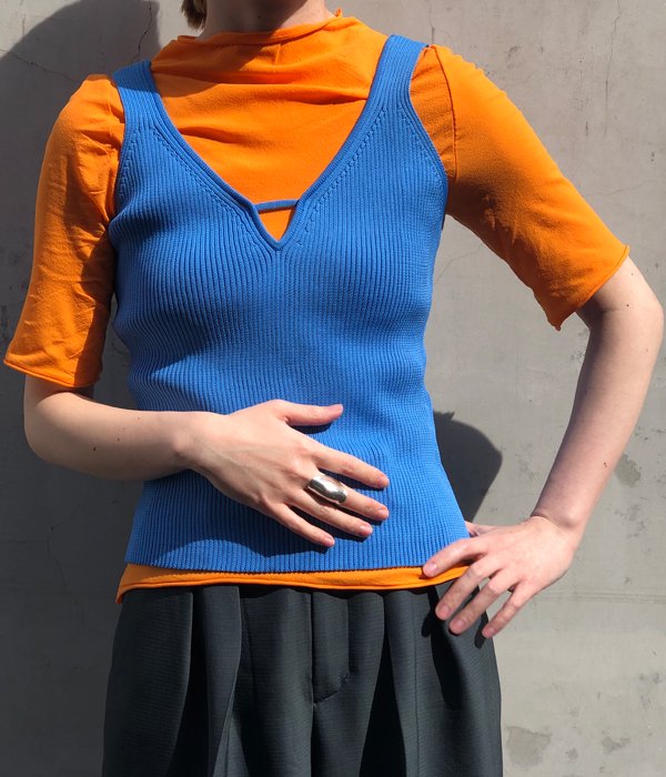 FUMIKA_UCHIDA/Nylon/MOCK-NECK SHORT-SLEEVE TOP(ORANGE)