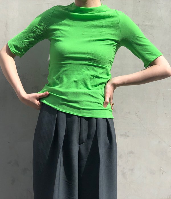 FUMIKA_UCHIDA/Nylon/MOCK-NECK SHORT-SLEEVE TOP(YELLOWGREEN)