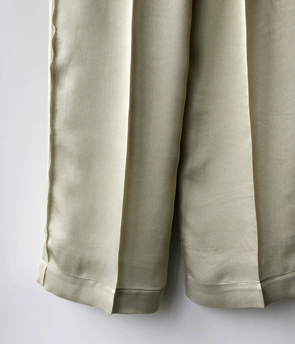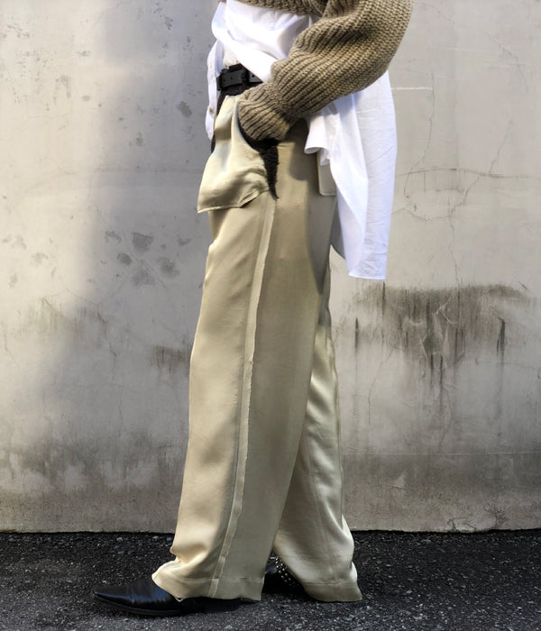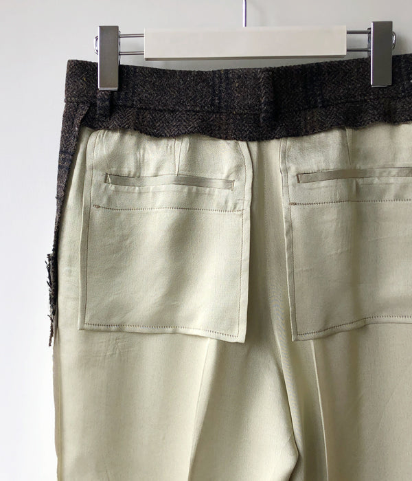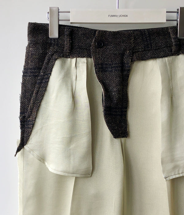 FUMIKA_UCHIDA/Plaid Nep Tweed/Satin CUT-OUT SLACKS(OLVBRN×CHARCOAL/AVOCADO satin/size34)