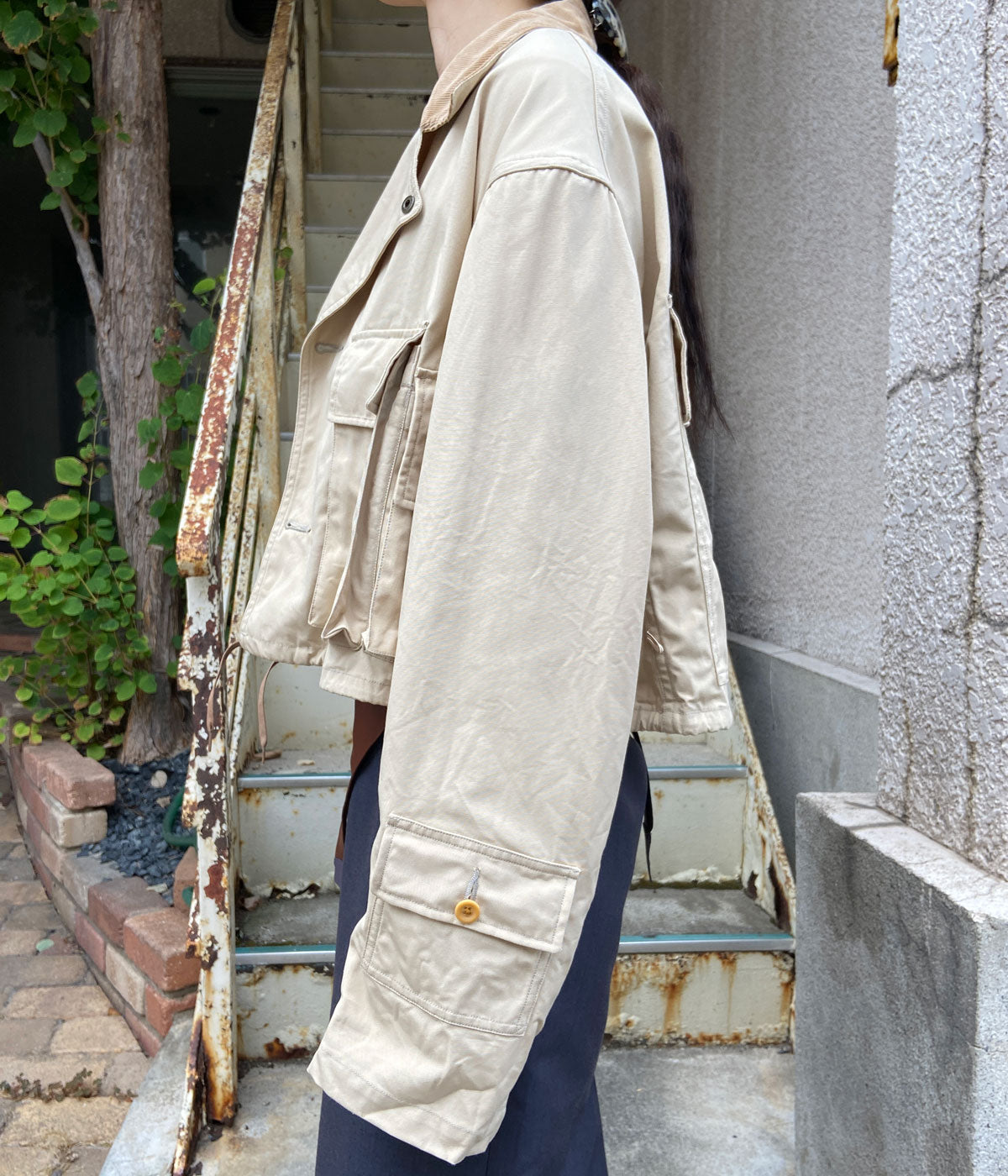 FUMIKA_UCHIDAからPOPLIN SHORT JACKETが入荷しました。上質な糸による自然な光沢感としっかりとした手持ち感のあるイタリア製のコットンポプリンを使用したオーバーサイズショートジャケット。襟にはオリジナルの16ウェールコーデュロイを使用。身頃の前後に左右対称の大きさの異なるマチ付きの立体感のあるポケットを配したデザイン。製品でのワンウォッシュタンブラー加工入り。
