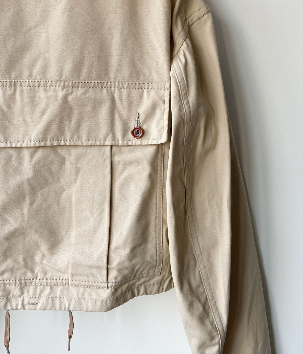 FUMIKA_UCHIDAからPOPLIN SHORT JACKETが入荷しました。上質な糸による自然な光沢感としっかりとした手持ち感のあるイタリア製のコットンポプリンを使用したオーバーサイズショートジャケット。襟にはオリジナルの16ウェールコーデュロイを使用。身頃の前後に左右対称の大きさの異なるマチ付きの立体感のあるポケットを配したデザイン。製品でのワンウォッシュタンブラー加工入り。