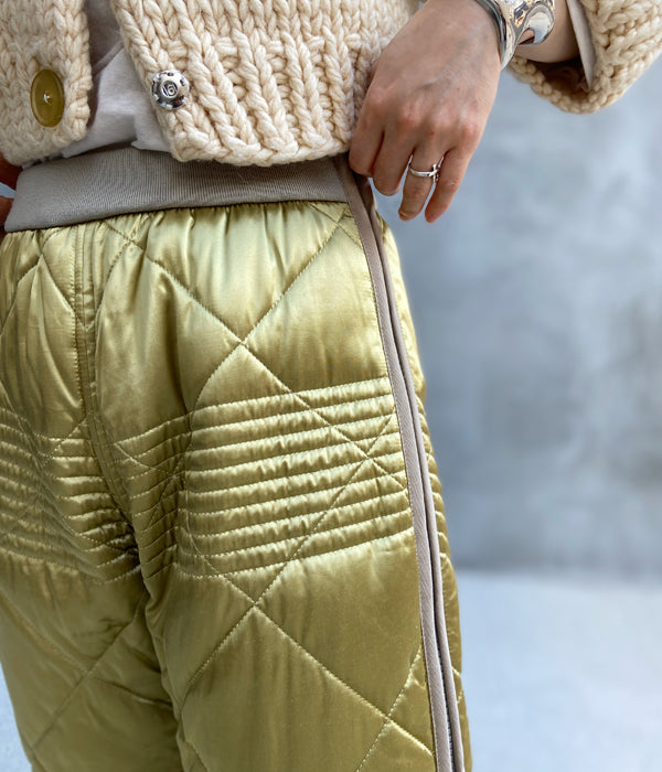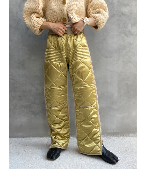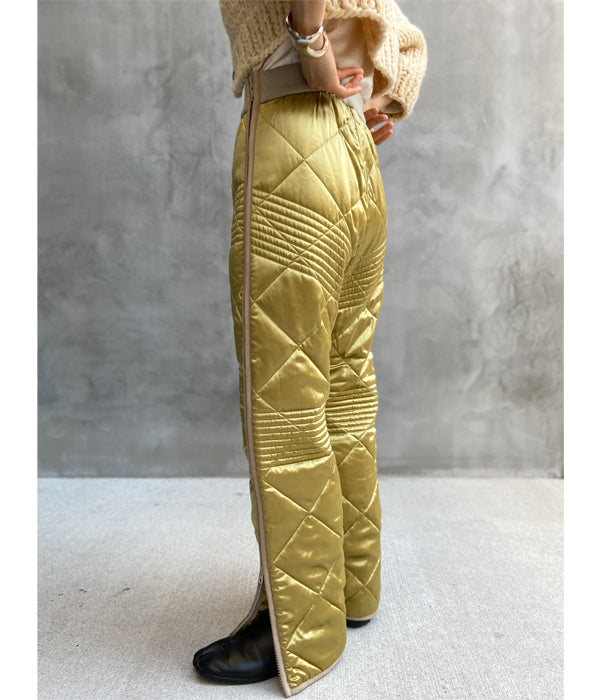 FUMIKA_UCHIDA/QUILTED SATIN STRAIGHT LEG PANTS(GOLD)