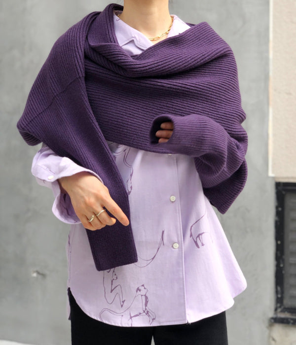 FUMIKA_UCHIDA/RIB STITCH HOODED SLEEVE STOLE(MAUVE)