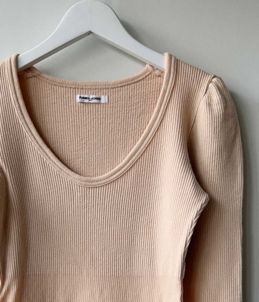 FUMIKA_UCHIDA/RIB STITCH U-NECK UNDERWEAR(PINKBEIGE)