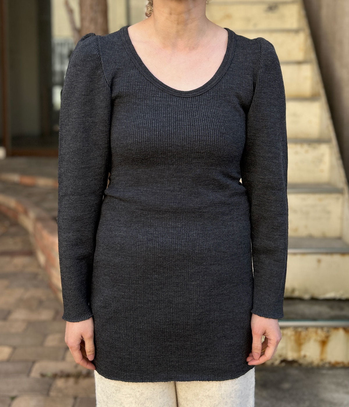 FUMIKA_UCHIDA/RIB STITCH U-NECK UNDERWEAR(TOP CHARCOAL)