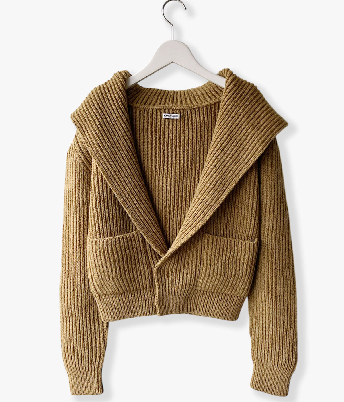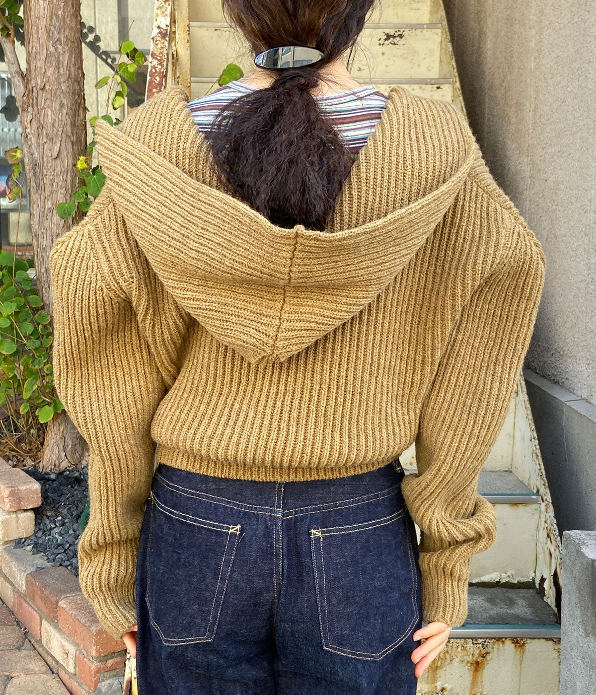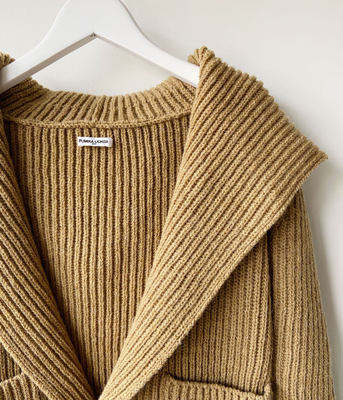 FUMIKA_UCHIDA/SHETLAND RIB STITCH HOODED CARDIGAN(TOP BROWN)