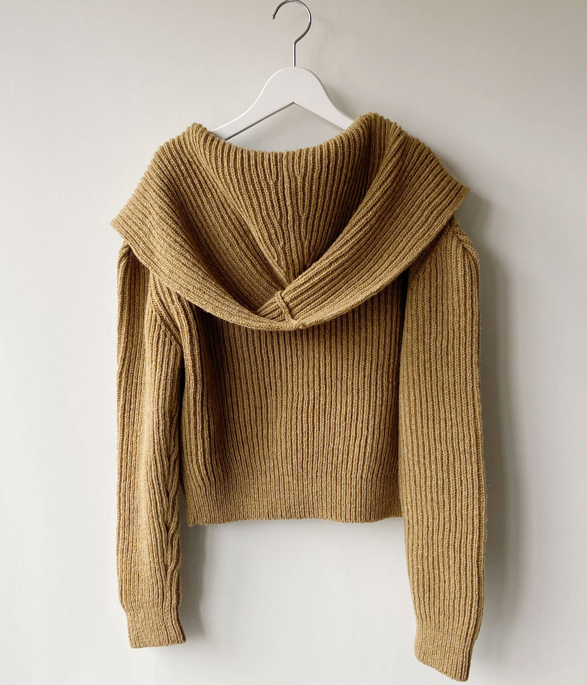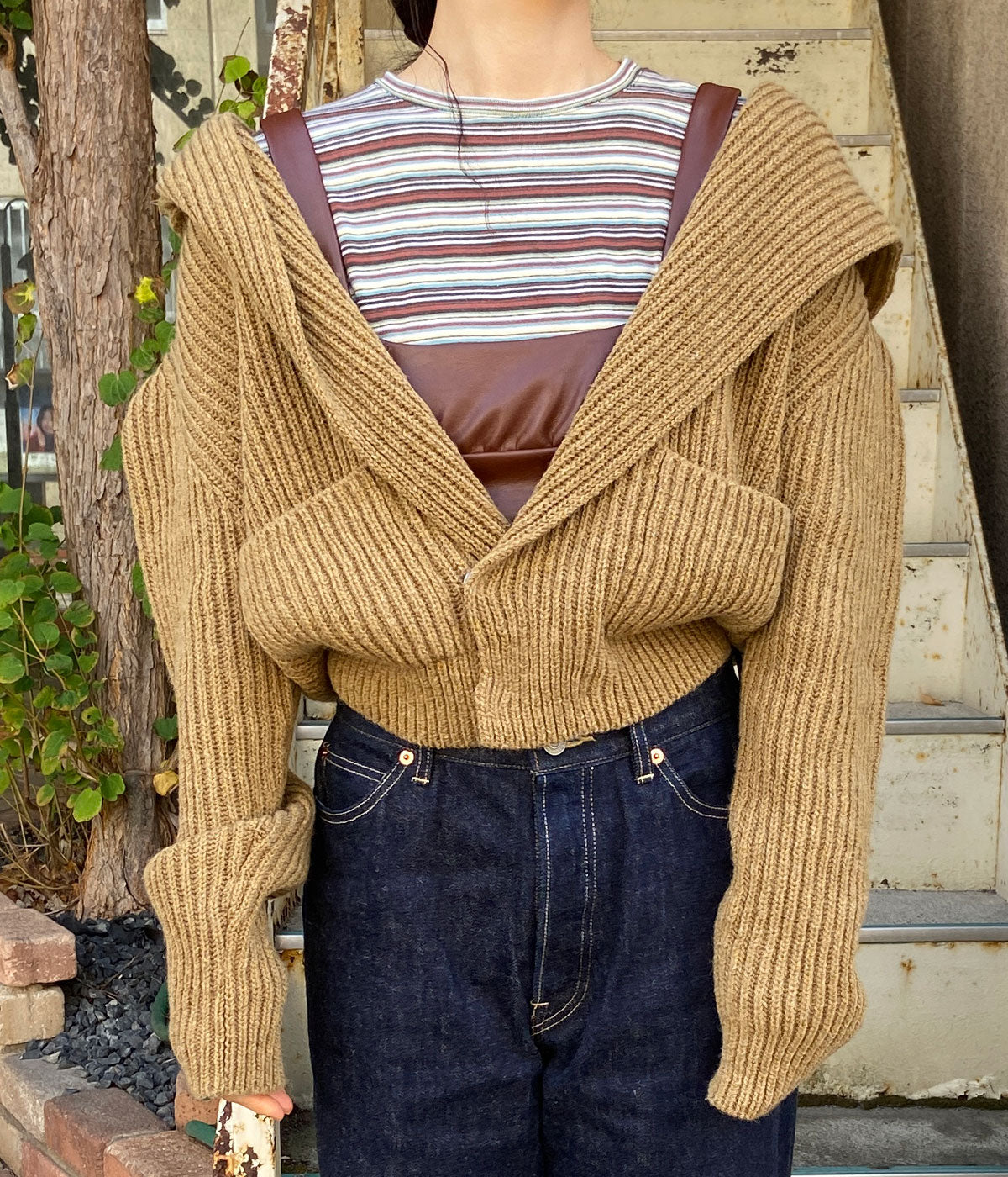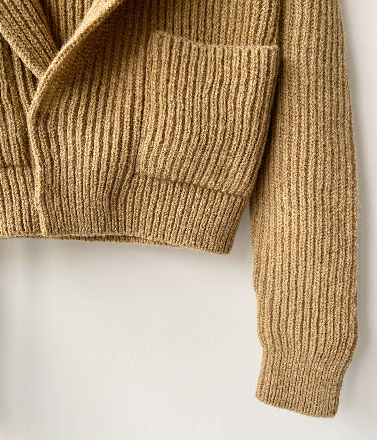 FUMIKA_UCHIDA/SHETLAND RIB STITCH HOODED CARDIGAN(TOP BROWN)