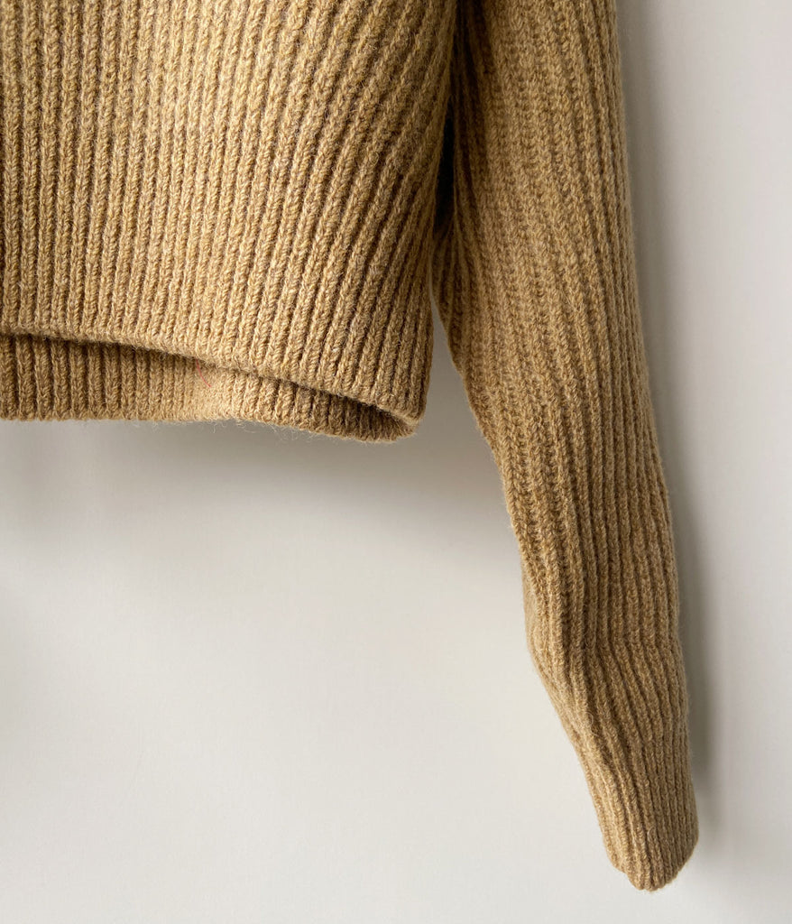 FUMIKA_UCHIDA/SHETLAND RIB STITCH HOODED PULLOVER(TOP BROWN)