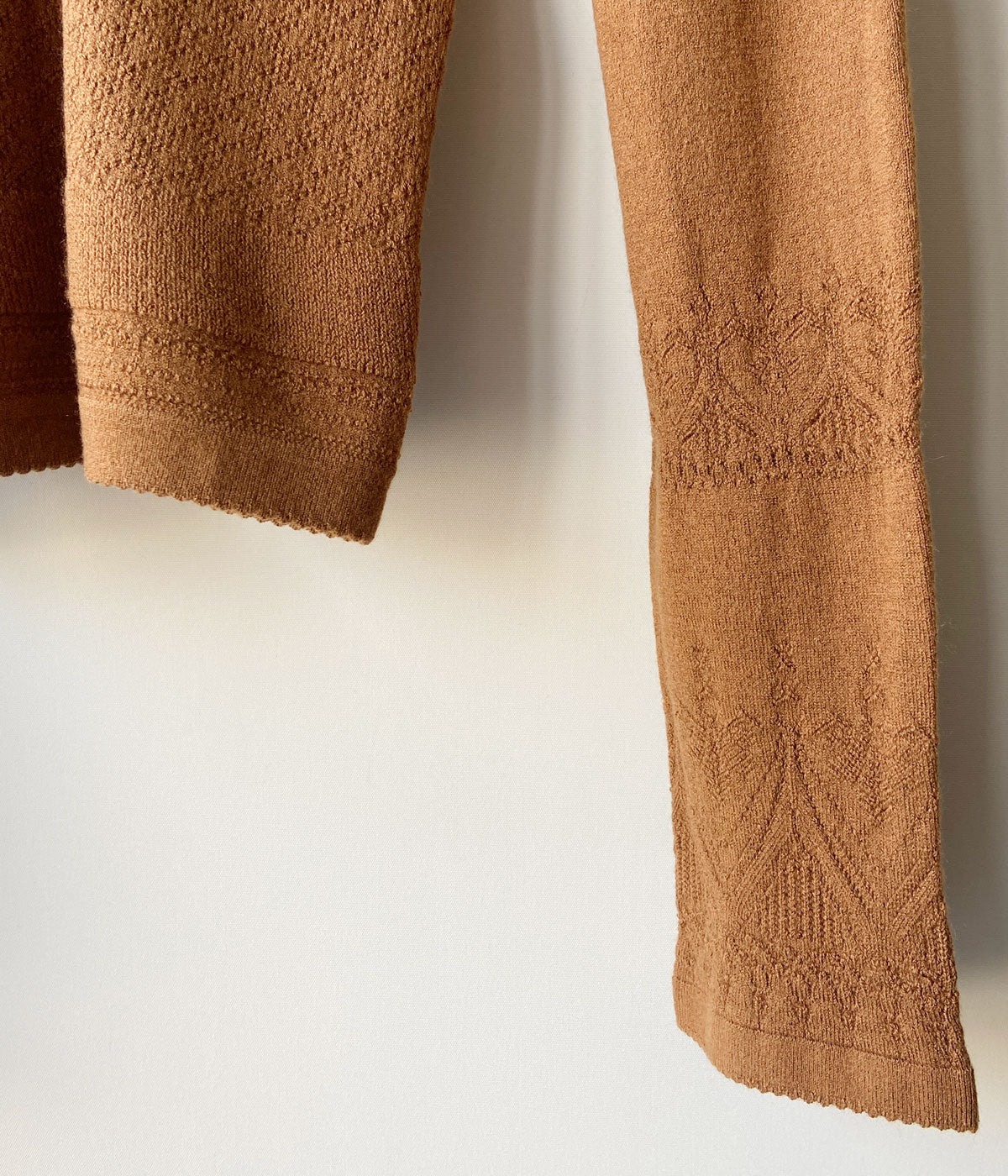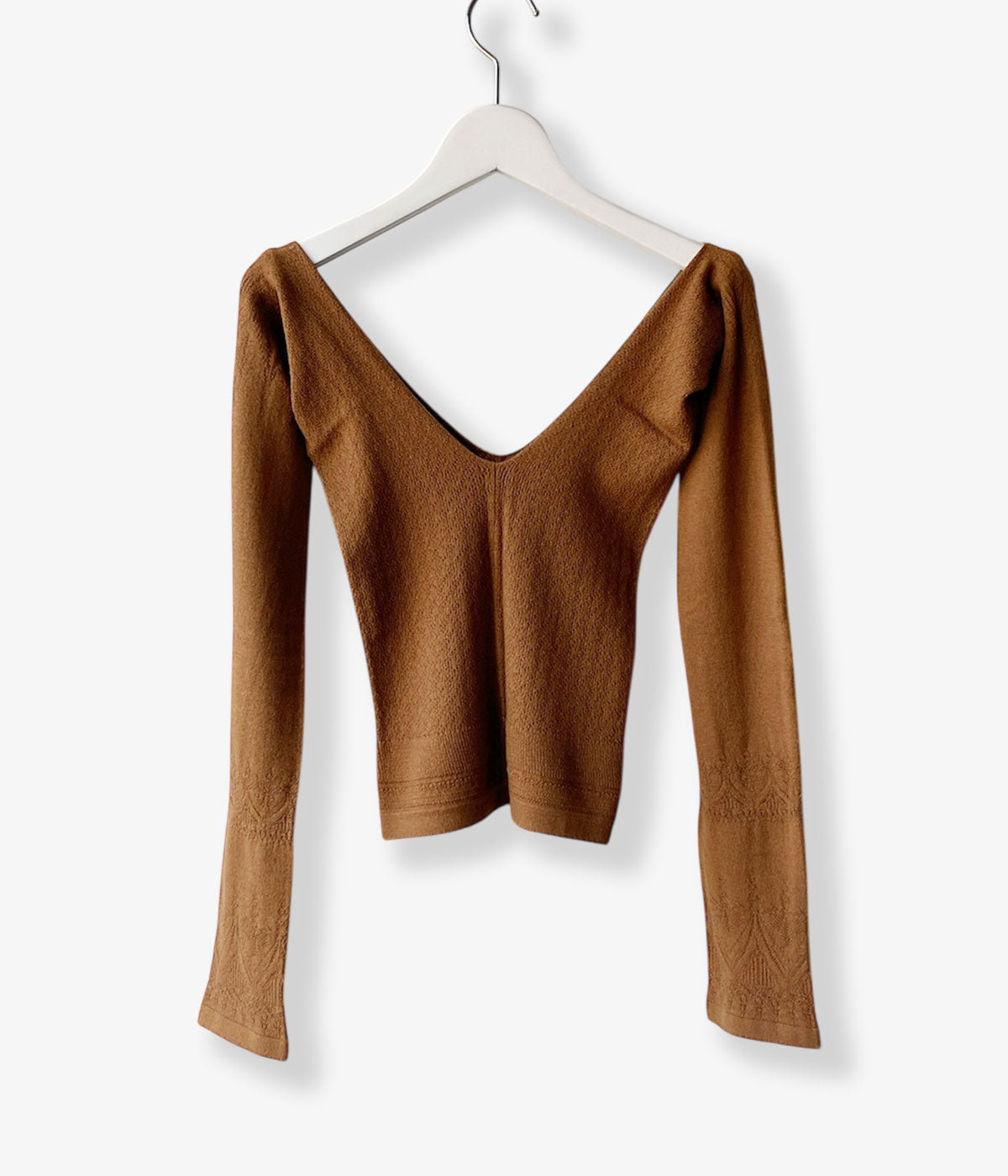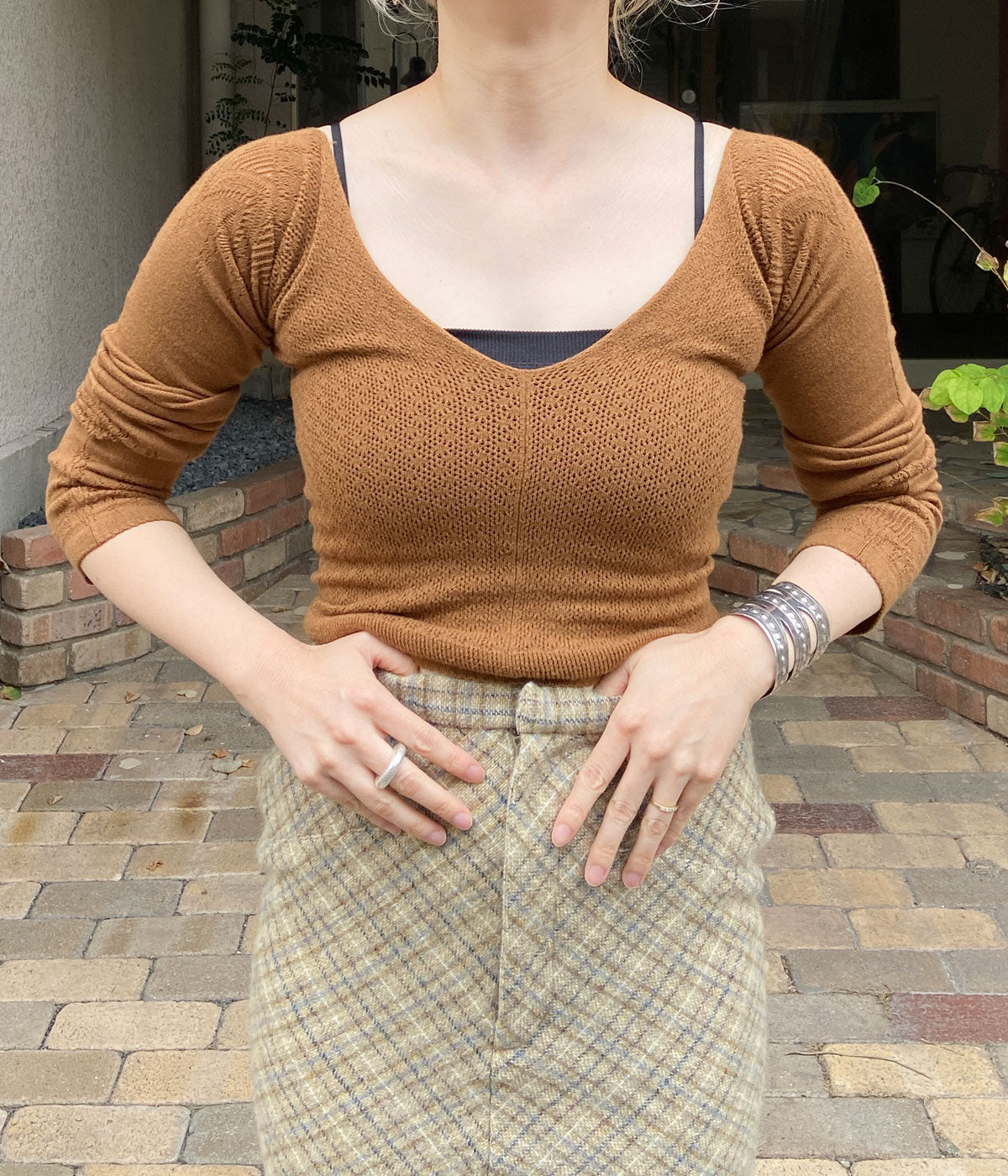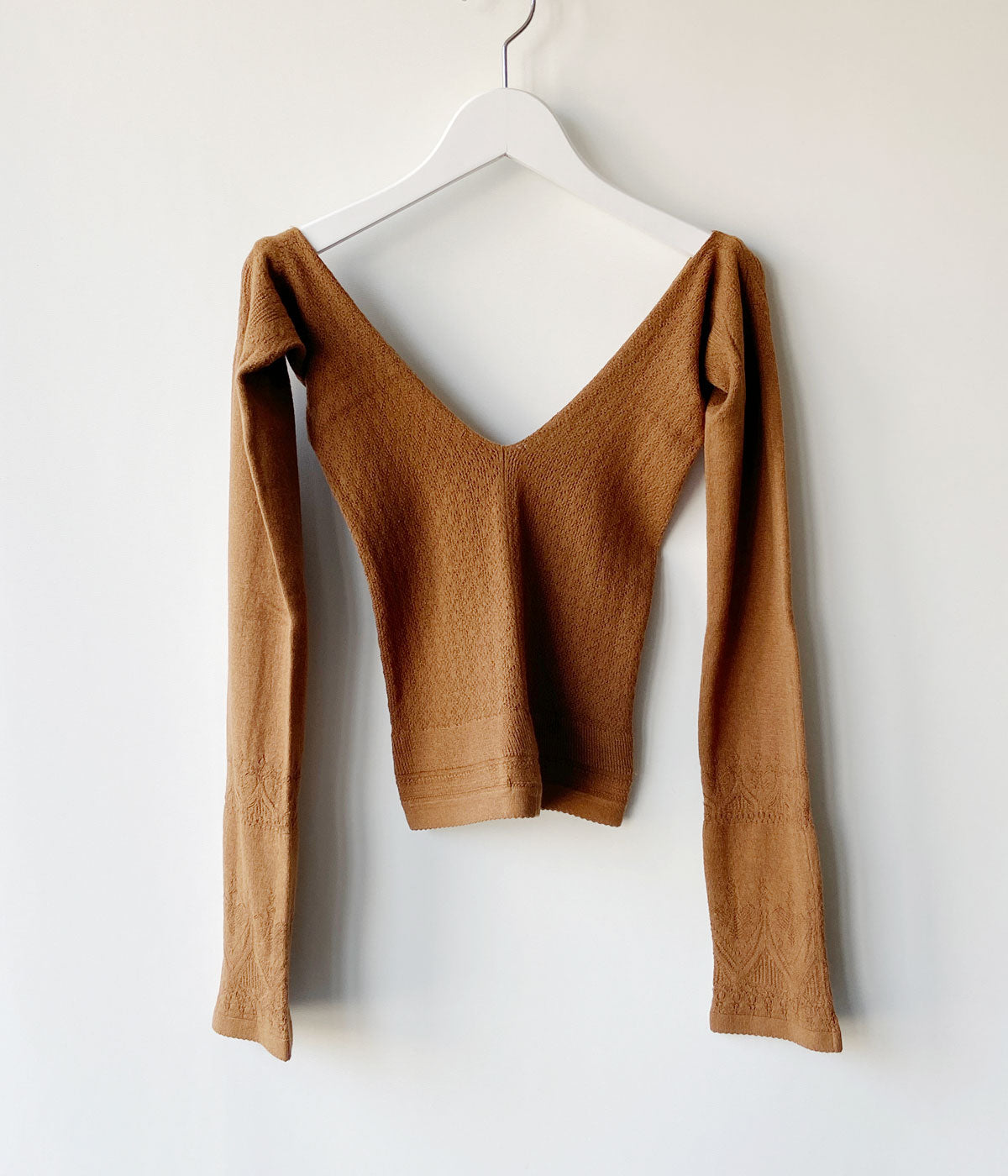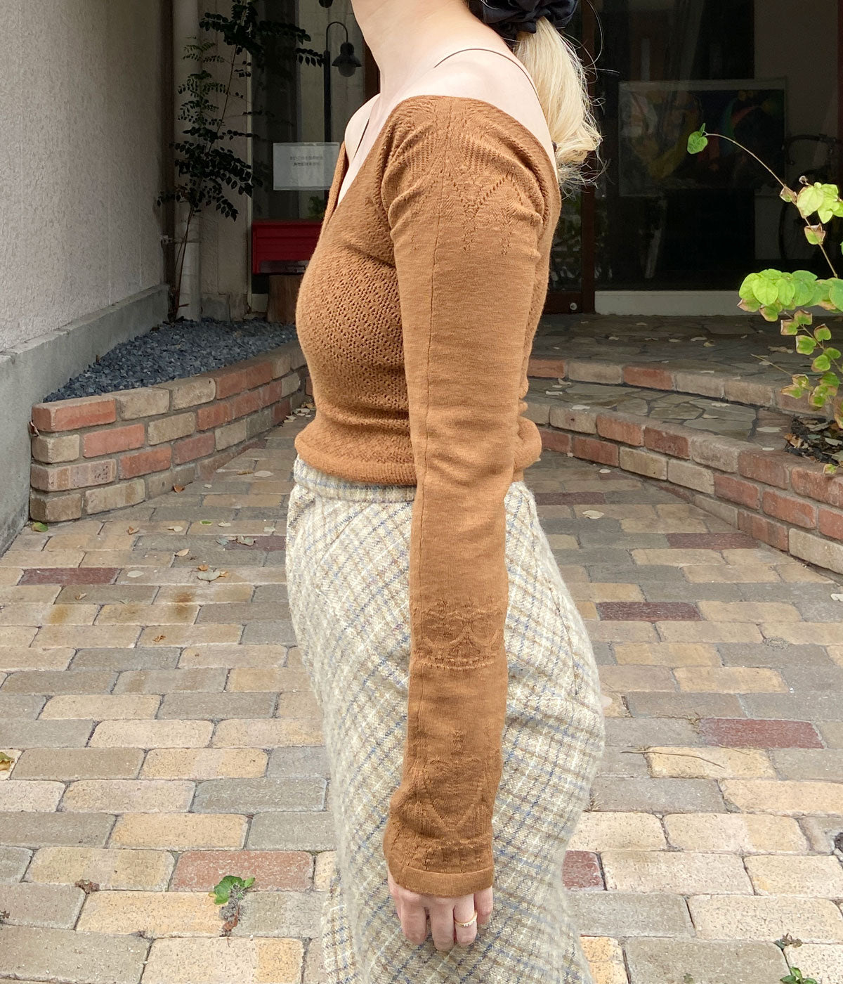 FUMIKA_UCHIDAからSILK LACE KNITTING TIGHTS TOPが入荷しました。シルクの自然な光沢とカシミアの柔らかさが特徴のストレッチ糸で作るタイツ型のオフショルダートップ。ヴィクトリアンレースグローブから着想を得た透かし編みをストレッチ糸を使用してアクティブな印象を取り入れたデザイン。