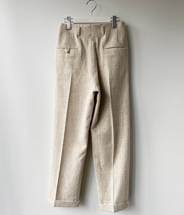 FUMIKA_UCHIDA/SPLASHED PATTERN WIDE TAPERED PANTS(OATMEAL)