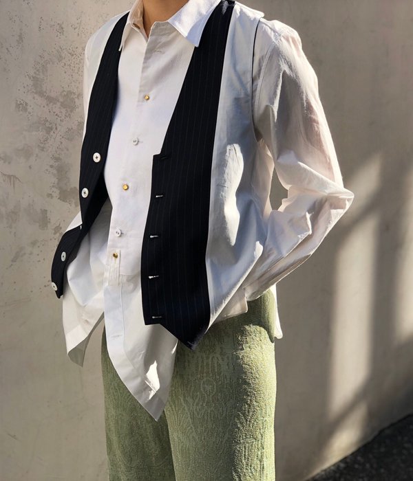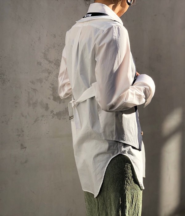 FUMIKA_UCHIDA/STANDARD-COLLAR BIB SHIRT(WHITE×GOLD/size34)